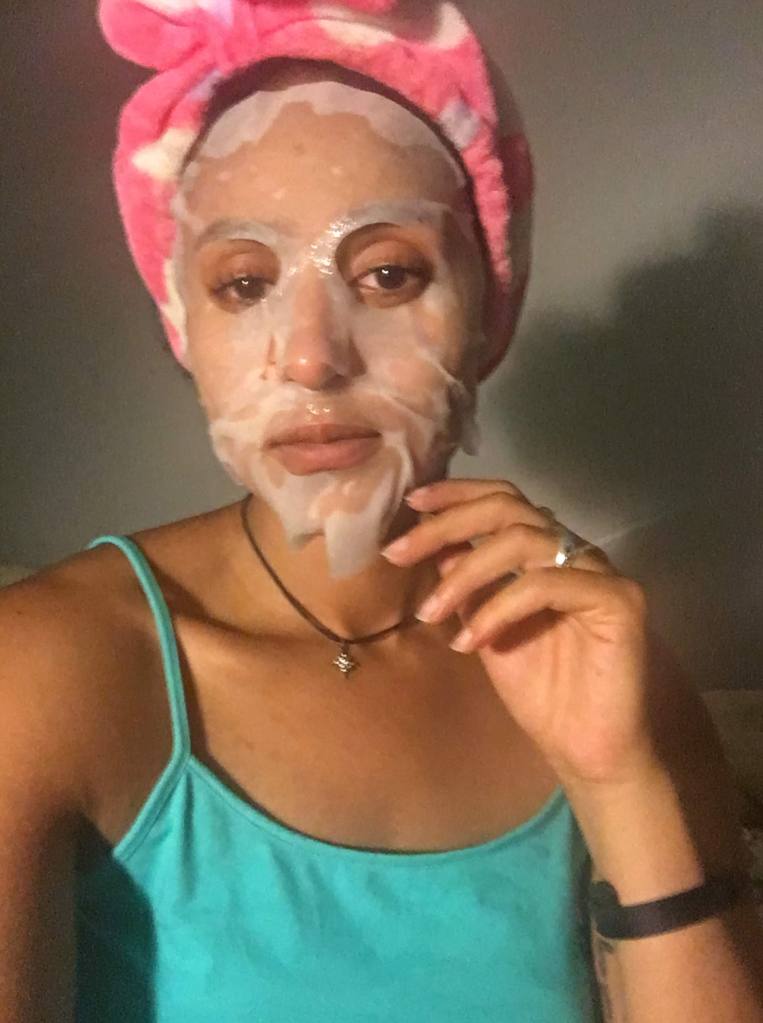 So! I put on the sheet mask, and then proceeded to watch Netflix until I fell asleep with the mask still on (LOL!) I probably woke up about an hour later, peeled off the mask, rubbed the excess product into my skin, and then went back to sleep