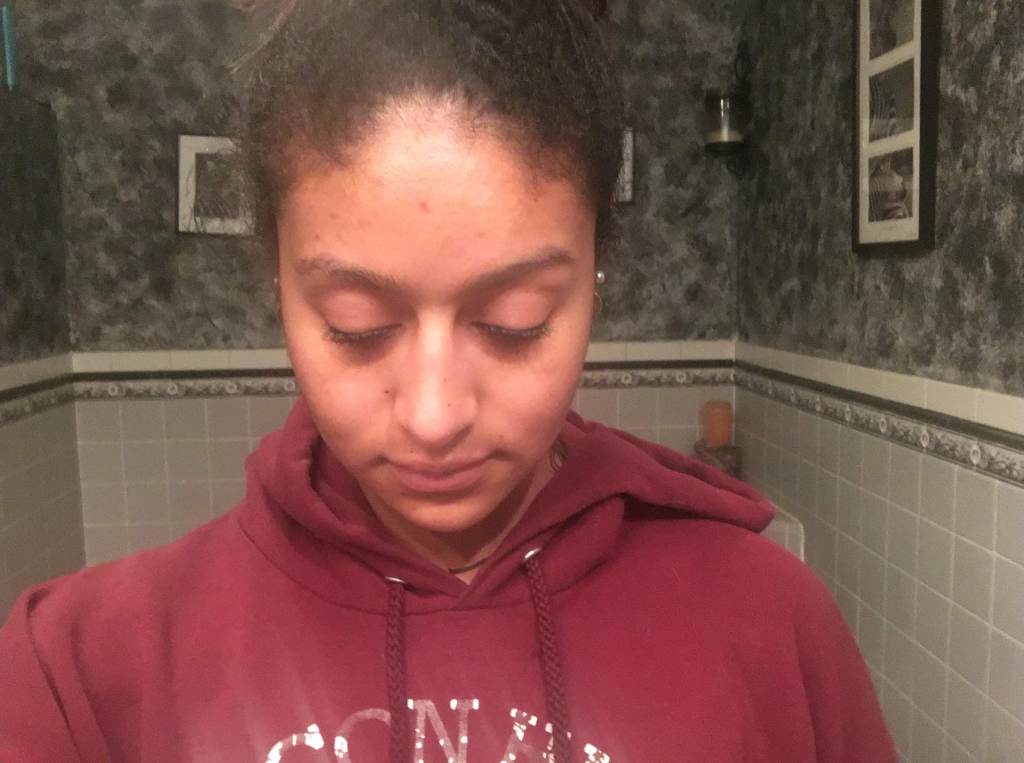 Above are some *horrible quality* close ups of the areas I’m talking about: my forehead and cheeks.