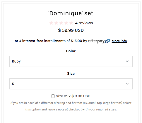 And as an added bonus, you can mix-and-match sizes of the tops and bottoms for an additional $3 US.