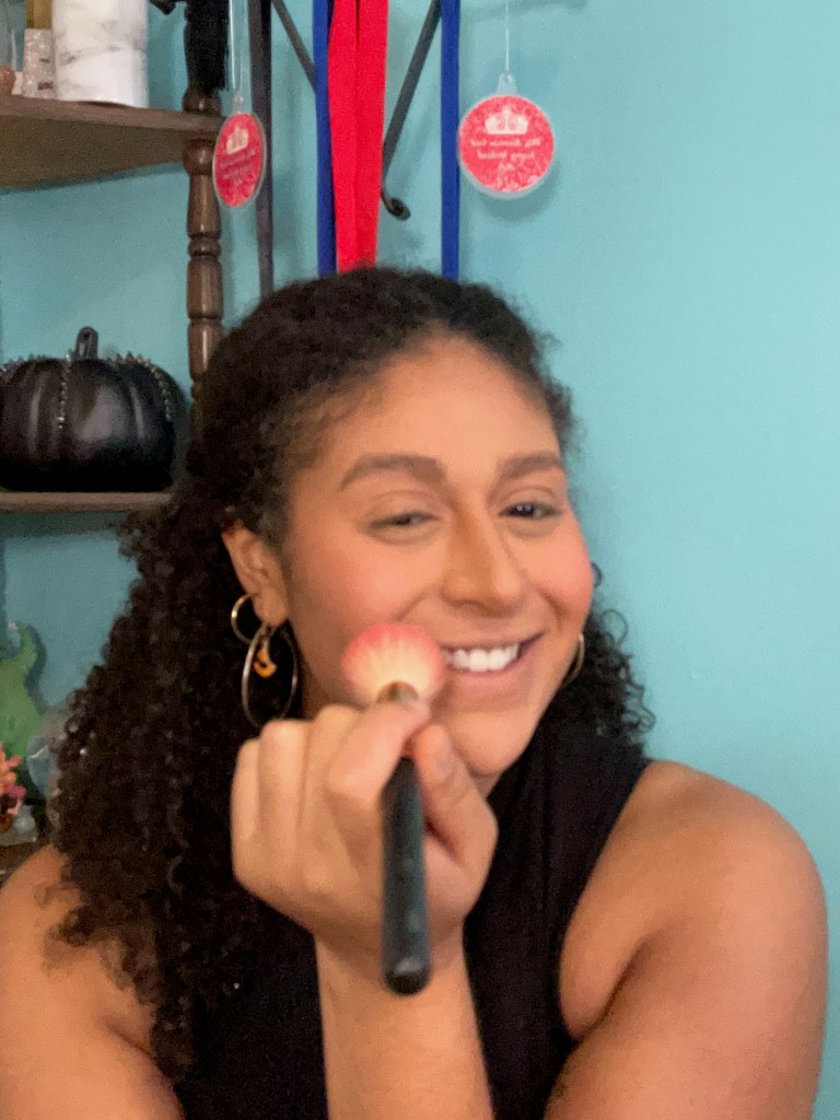 I’ll use this technique for both an everyday look and a full glam look, adding more blush depending on the look.