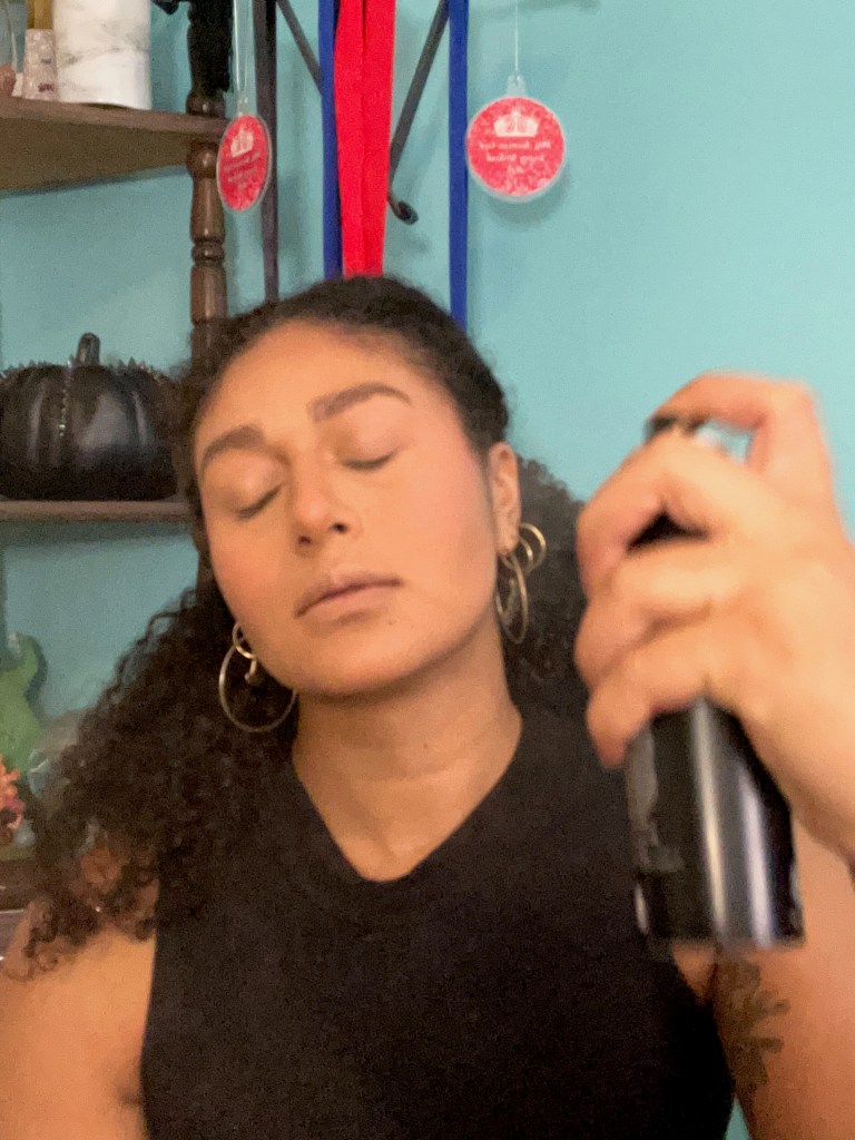 At this point, I’ll do a round of setting spray before continuing onto my eyebrows.