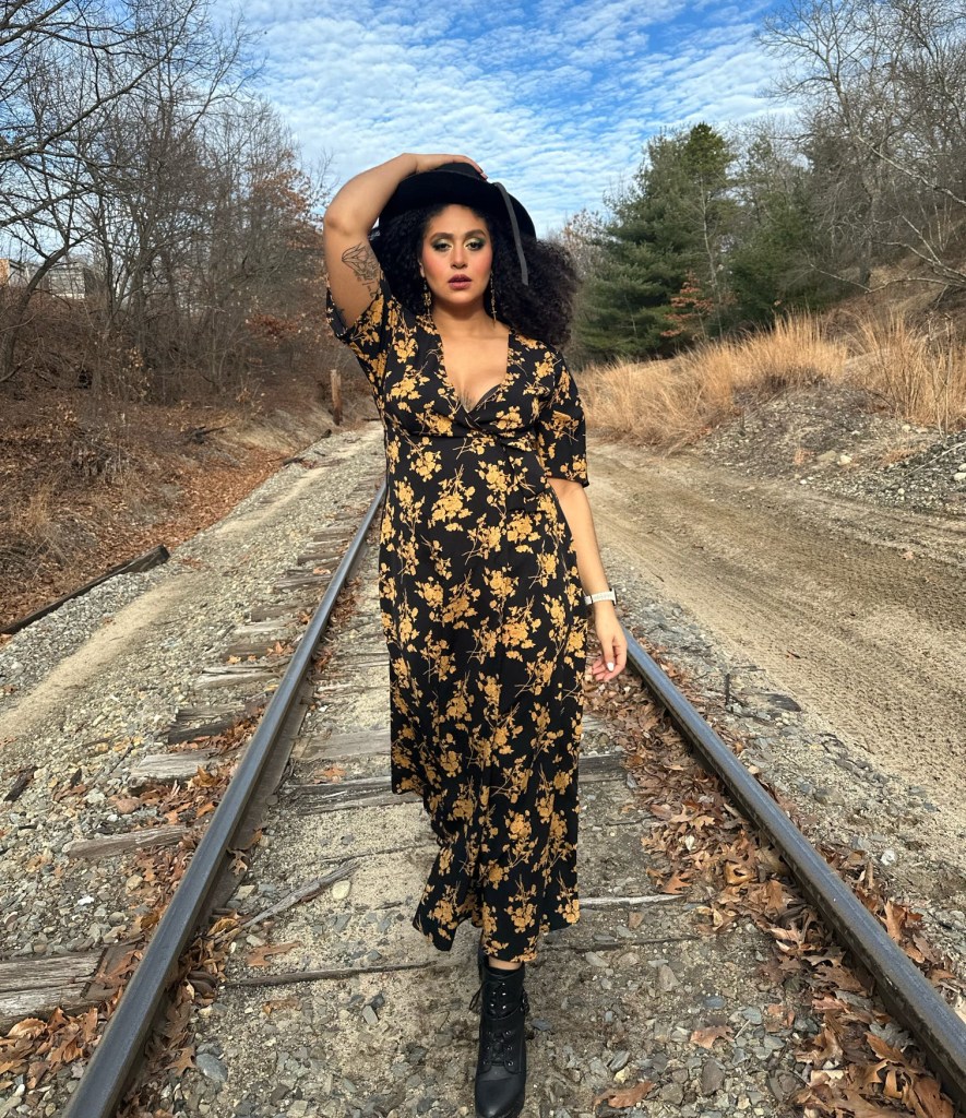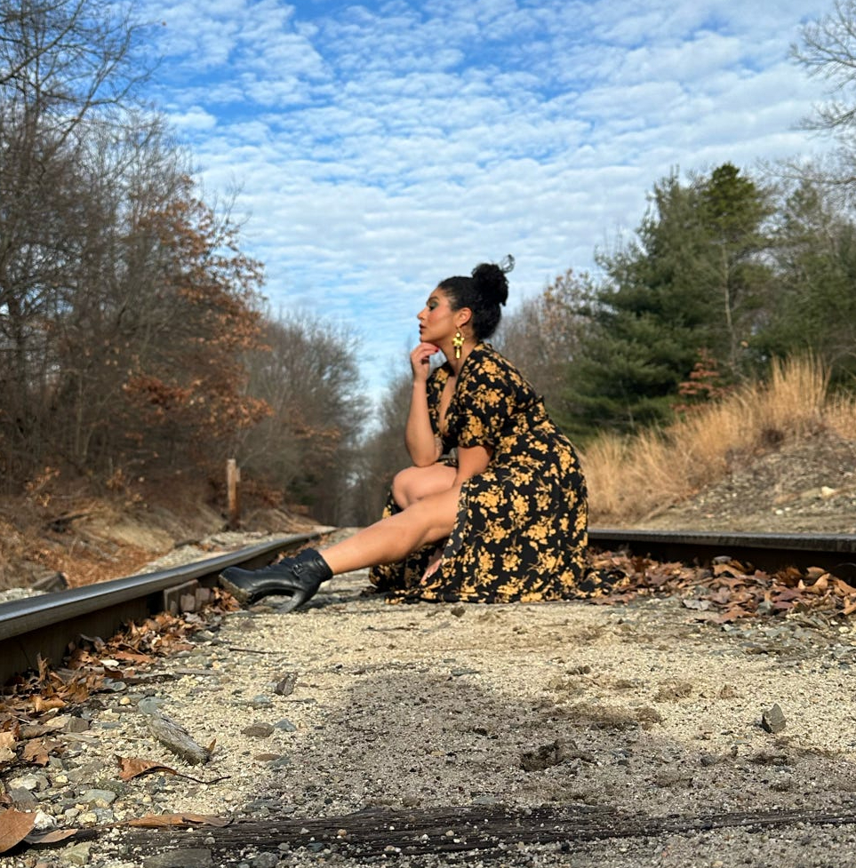 This was the only look I had envisioned prior to shooting. Shelby and I had taken our dogs for a hike in this park a few months ago, and when we stumbled onto the train tracks the idea instantly struck me. This is one of my favorite dresses – a wrap dress from SheIn, and I would quite literally buy it in every color-way they make if I wasn’t shopping-fasting for the year. I pair it with my ShoeDazzle motorcycle boots, and this cowboy-esq hat I was gifted for Christmas when I was in college.