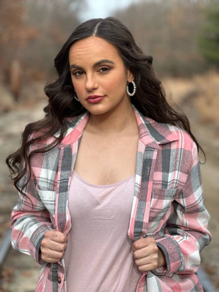 When we moved to our second location – the train tracks – we kept Shelby’s makeup the same but switched up her lip to coordinate with her feminine cowgirl look!