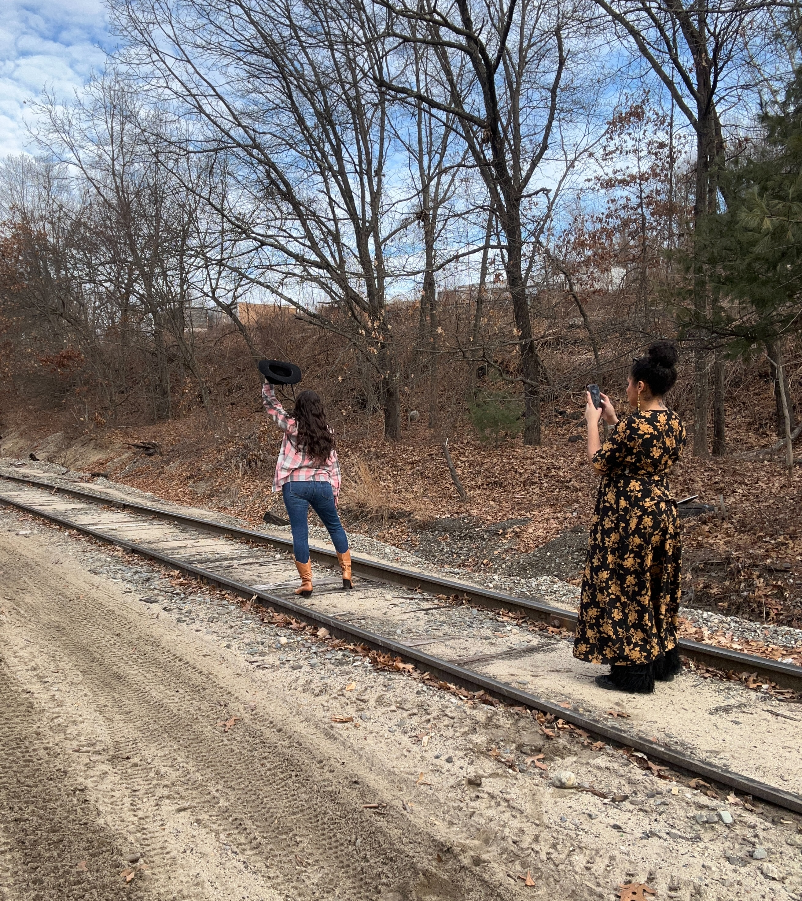 Because we hadn’t planned many outfits prior to shoot day, we ended up using three locations – with the greenery, the train tracks, and the gazebo. When I started planning, I envisioned us starting at the greenery with natural and fresh looks; using the train tracks as a sort of urban or country style aesthetic; and the gazebo for a more magical and ethereal inspired scene.