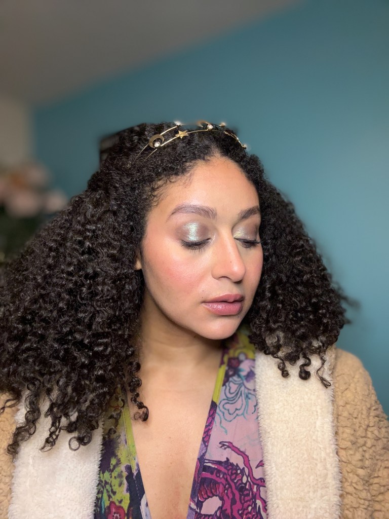 I test ran this look to celebrate two of my sister’s birthdays this past weekend. I used the Sailor Moon “Shining Moon” as my base color, going from lashes to brow, and a combo of the Zulu turquoise shade and their glittery green shade. After laying down the base shadow, I went in with the Zulu turquoise to fill in my crease then, using a brush, went over the center of my eyelid with concealer. I went over the concealer with the Zulu green shade, but noticed that it was a tad lighter than I was going for, so I went back over that with a similar shade, the Profusion “Harlequin,” and used their shade “Meadow” to line my bottom lash line. And finished the look by tight-lining the top and bottom waterline with a black pencil liner, and added a base of primer beneath my mascara.