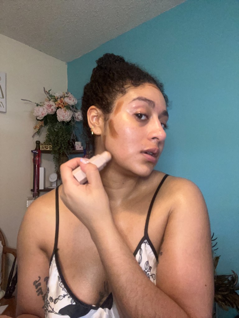 Lately I’ve been using two primers, the Maybelline Master Prime – which I apply first – and the Milk Makeup Hydro Grip Primer. Next I’ll go in with my cream contour – the Fenty Beauty Matchstick – and then I’ll conceal.