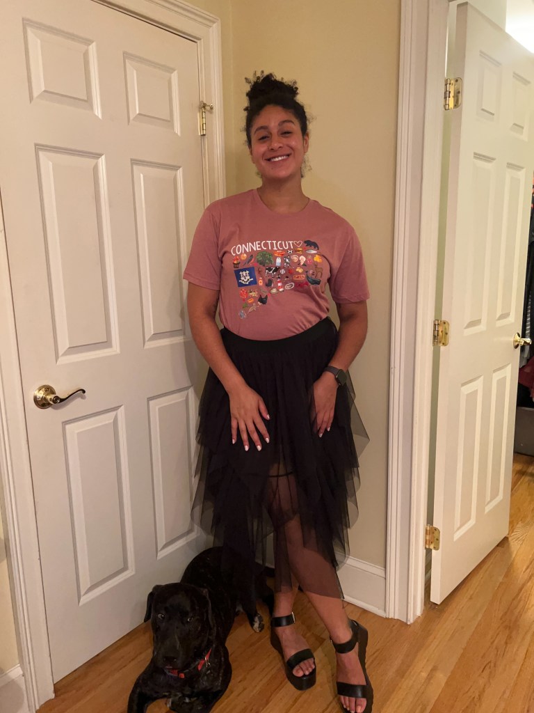State Rehearsal – I was born and raised in Connecticut, and it is with great pride that I represent my home state as I compete for the national title! My mom ordered the most adorable t-shirts that feature Connecticut-specific graphics – such as our state flag and state flower, the Mountain Laurel! I’m pairing it with the black tutu skirt I recently purchased from Renee’s Resale Clothing Outlet!