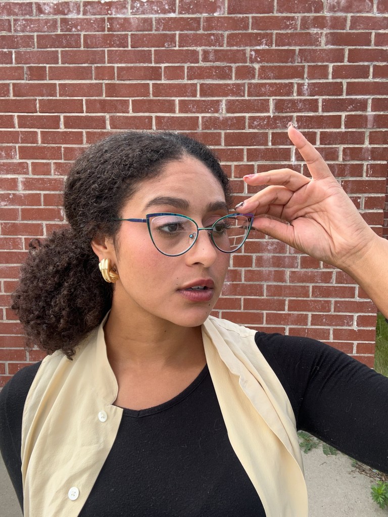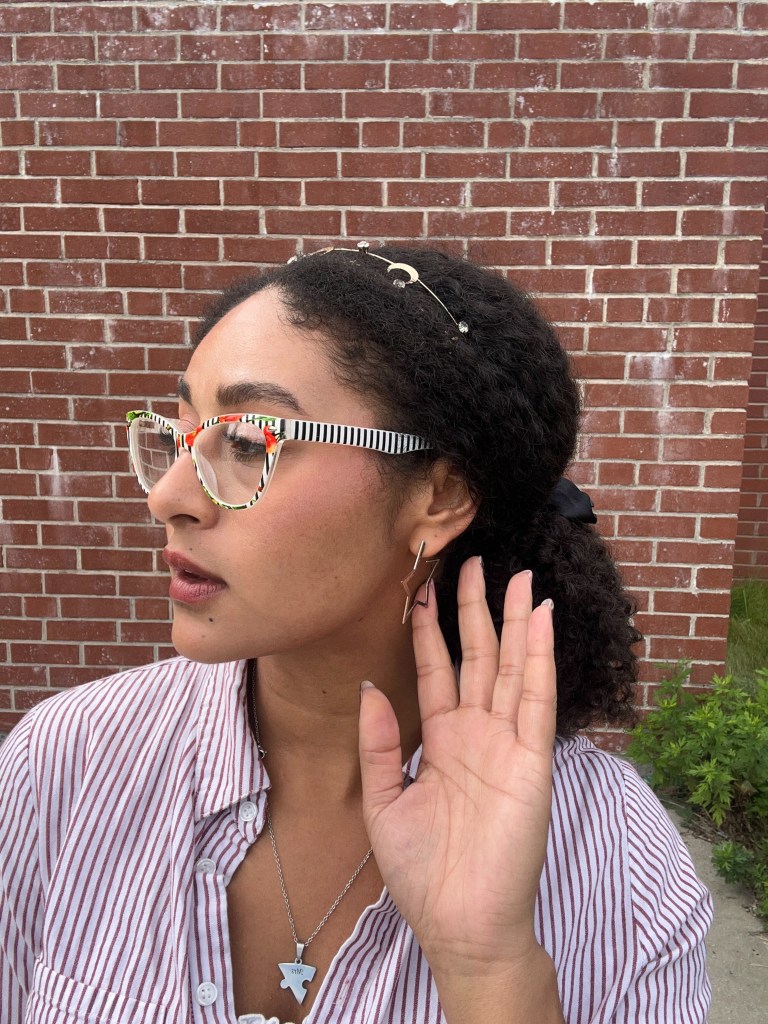 Accessories included a pair of snake print loafers that I got from Walmart, the star and moon headband from SheIn, and a pair of golden star earrings that I’ve had forever. I pulled my hair back loosely with a black ribbon, and added my floral print Zenni frames.