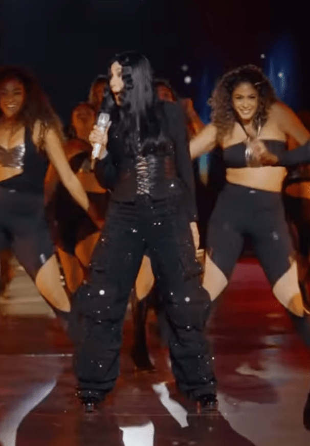 Positives – the performances were really, really good! Obviously, Cher stole the show and was truly beyond words. For being 78 years young, she was still dancing and having as much fun as she did back on The Sonny & Cher Comedy Hour. I’m obsessed with these black, sparkly, cargo pants and I’m going to need to know where to get a pair for myself!