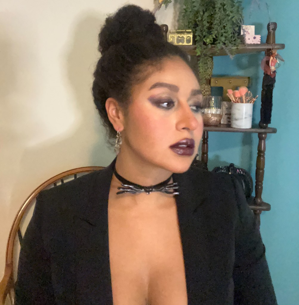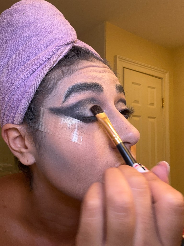 Because Morticia’s look centers on cool toned gray shades, I used the shade Sio from the ColourPop Of Quartz palette as my contour. After completing my brows – using the Milani Brow Wax and the NYX Satin Finish black pencil – I used the Of Quartz and Morphe 35H Hot Spot Artistry palettes to create my eye look.