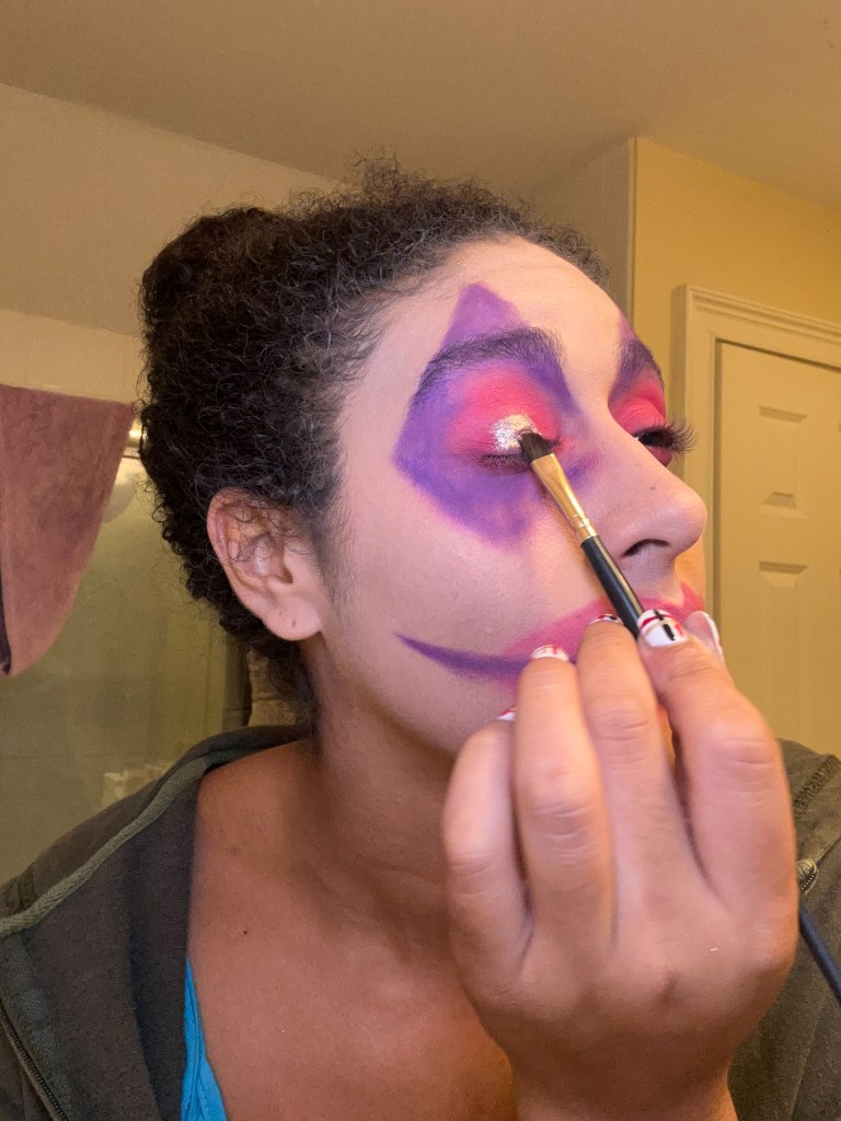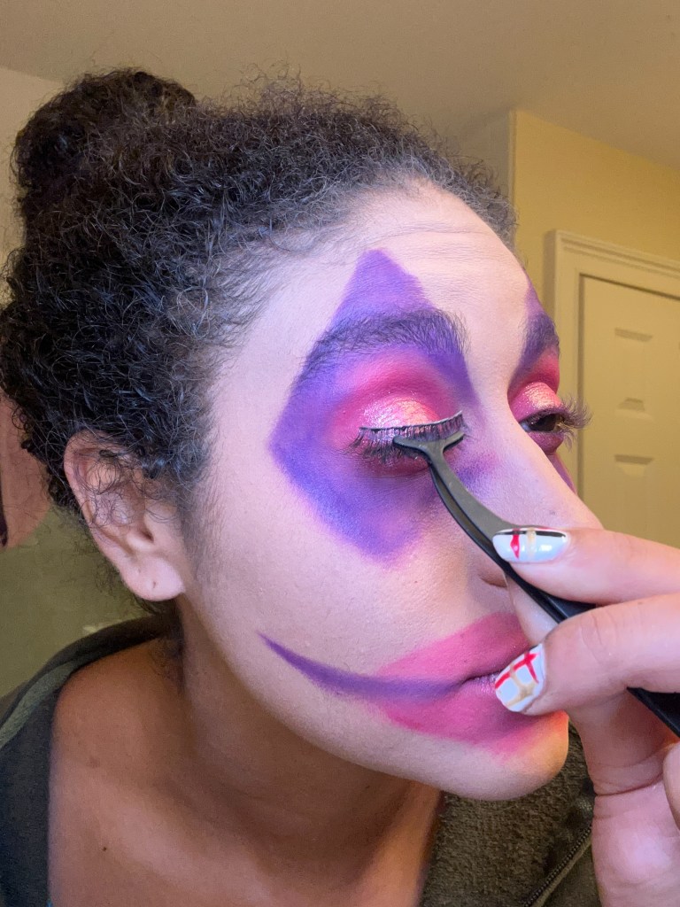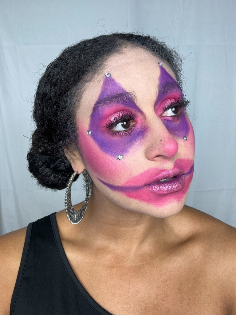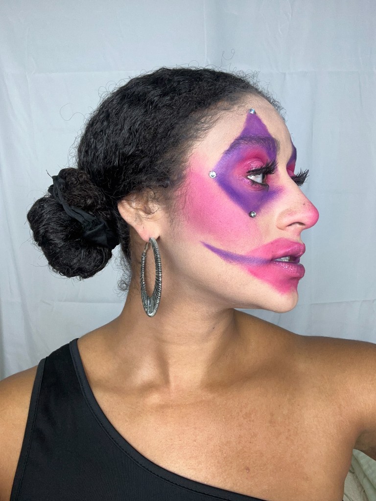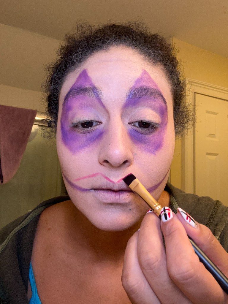 Now we move on to crafting the actual clown makeup! I originally made this look last year, so I decided I would go for the same color combo and try to update the look! I outlined my major shapes (the eyes and mouth) using the NYX Slim Eye Pencil in shade Purple before going back over it with the dark purple shade from The Zulu by Juvia’s palette. I eventually outlined the lips with an eyeshadow – the Barbie x ColourPop Malibu Barbie palette shade Best Coast. With my outlines in place, I began filling in the eye area using the same shade of purple eyeshadow, leaving the center of the eyelid clear.