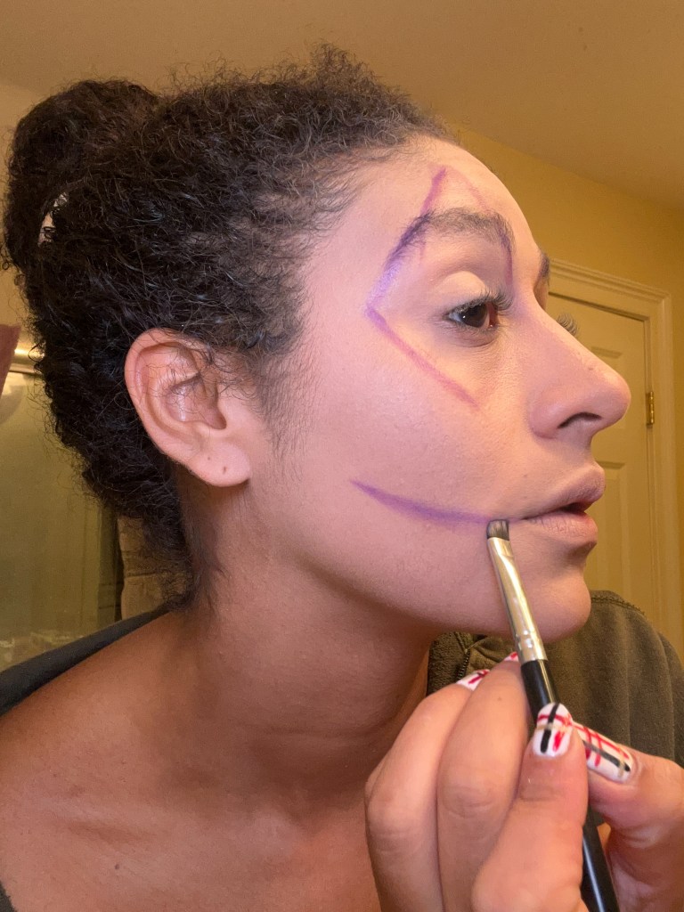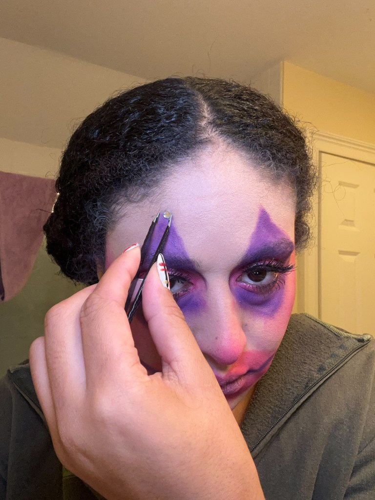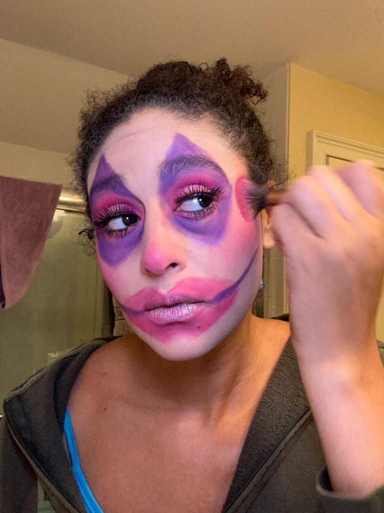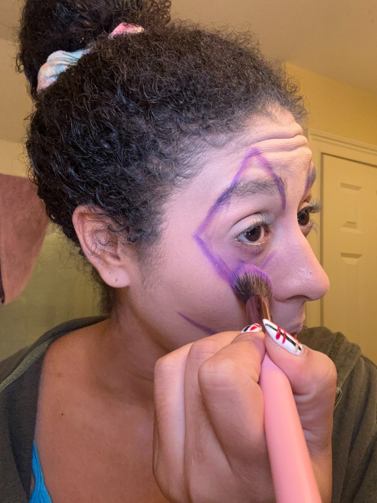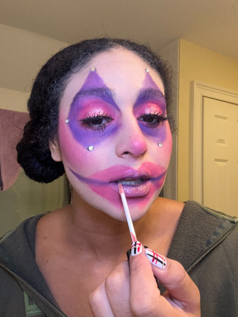 Now we move on to crafting the actual clown makeup! I originally made this look last year, so I decided I would go for the same color combo and try to update the look! I outlined my major shapes (the eyes and mouth) using the NYX Slim Eye Pencil in shade Purple before going back over it with the dark purple shade from The Zulu by Juvia’s palette. I eventually outlined the lips with an eyeshadow – the Barbie x ColourPop Malibu Barbie palette shade Best Coast. With my outlines in place, I began filling in the eye area using the same shade of purple eyeshadow, leaving the center of the eyelid clear.