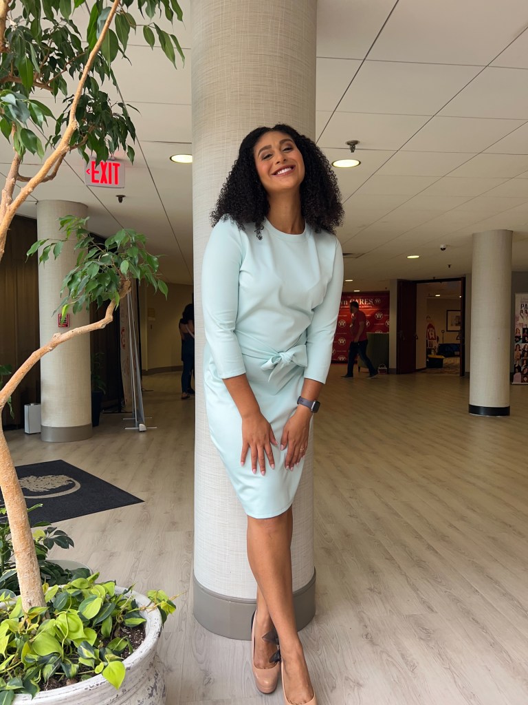 As we discussed above, what the event is will tell you a lot about the sartorial expectation. If you’re headed to work, school, an interview or networking event, you’ll want to aim for business or business casual – well tailored, i.e., nothing too baggy or too fitted, appropriate hem length, i.e., nothing too short or too revealing – especially if it’s a daytime event. If your business-related event is in the evening, you can add a bit of visual drama by using flashy accessories!