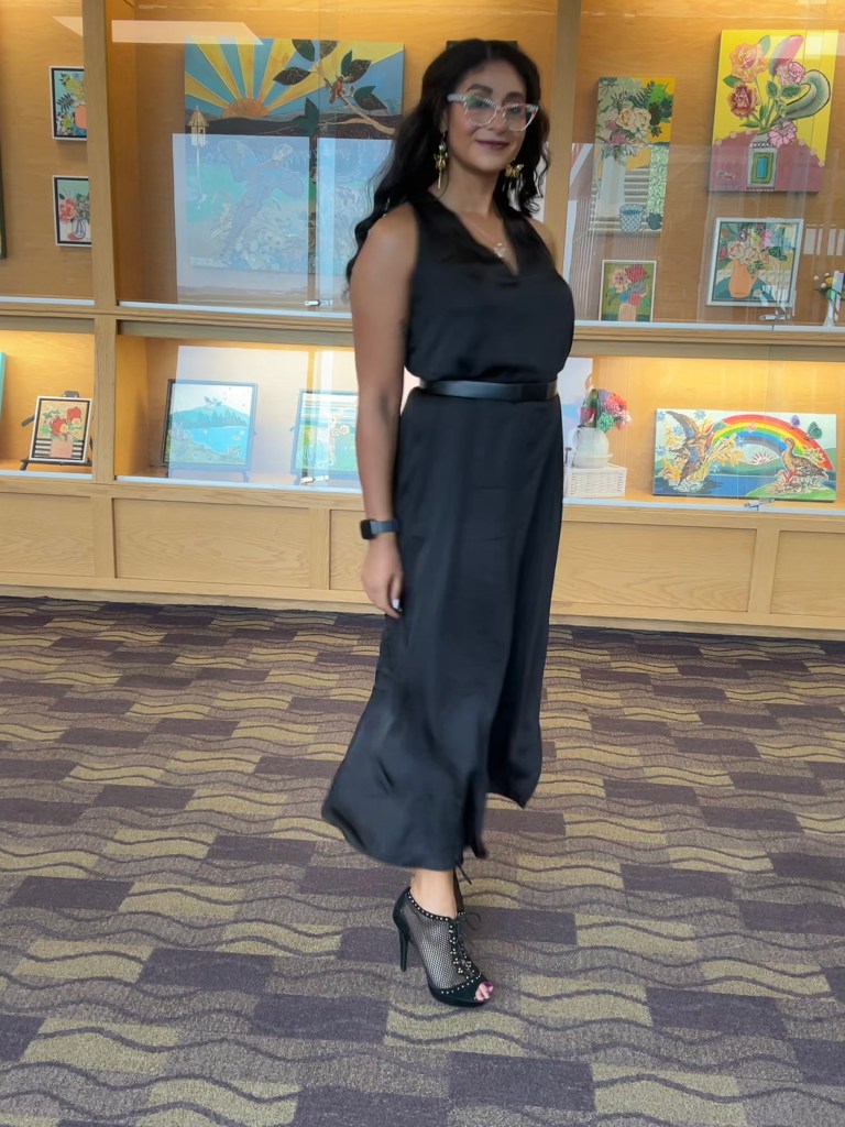 In a gown you’ll want floor length, and depending on your age a slit may also be appropriate. But as I’ll discuss further down, if you’re attending one of these events as an event organizer, a cocktail length dress may also be appropriate.