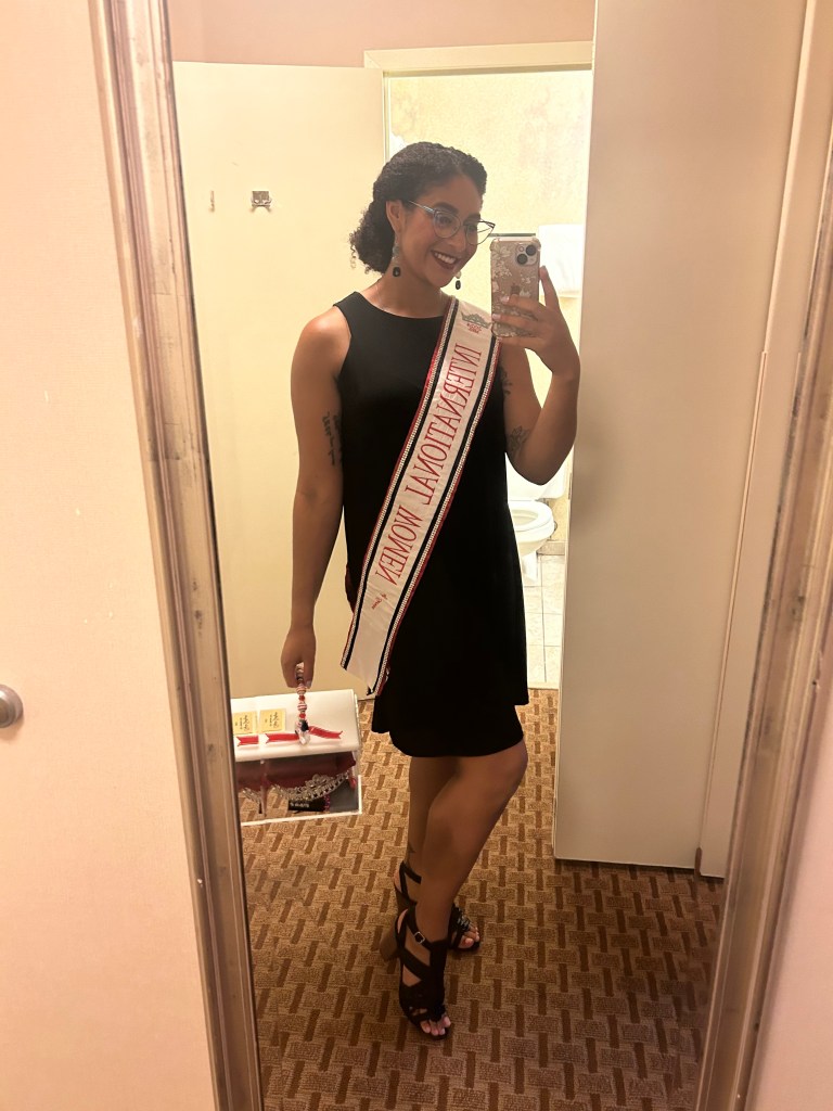 You could still wear a gown, depending on the level of adornment. For example, on my recent trip to Mississippi I wore a black gown by Venus that features some mesh panels. While the gown is certainly formal enough to present awards, it would not be formal enough to compete for an international title such as Miss Universe!
