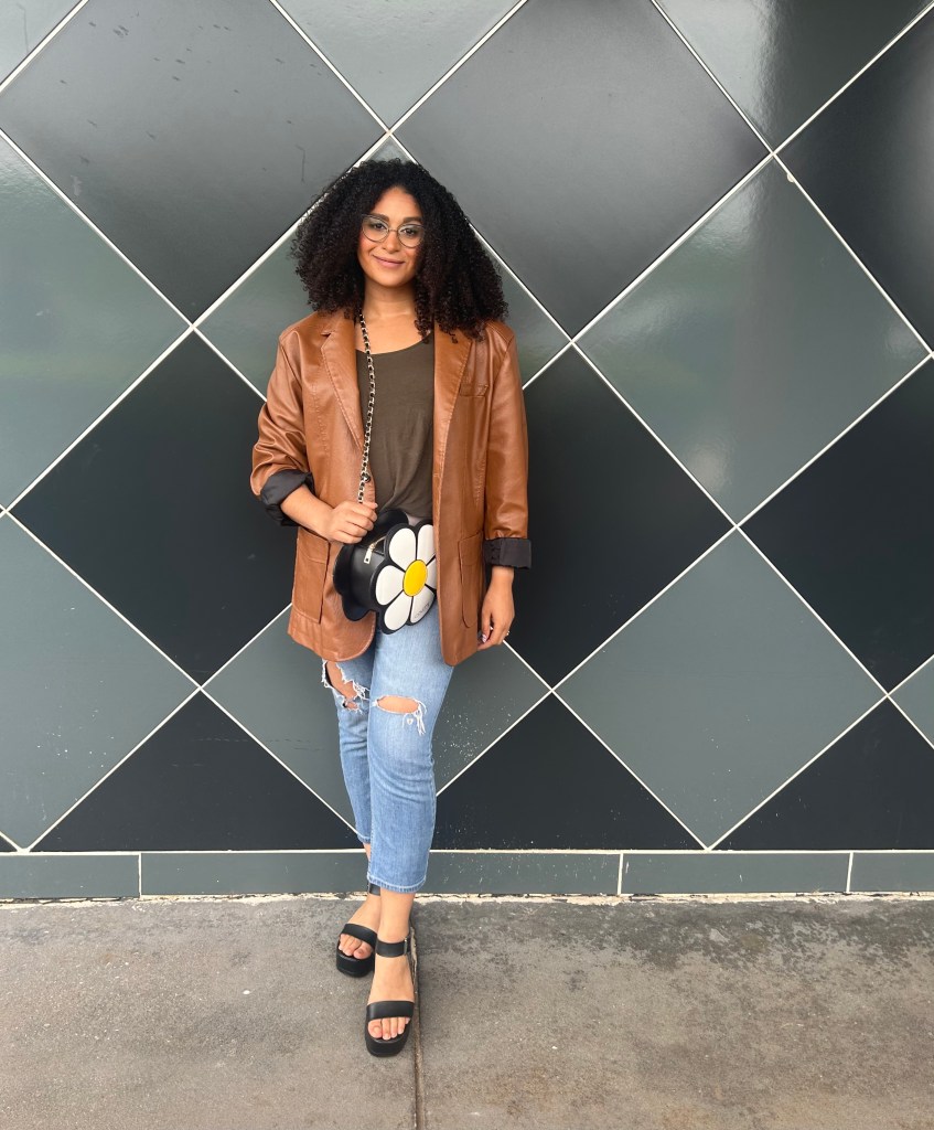 If your event is being held outside, make sure you’re dressing appropriately for the weather! If there’s a likelihood of rain, this could be a great opportunity to play with layers and textures, incorporating different colors and patterns into your protective wear (like my leopard print rain boots!)