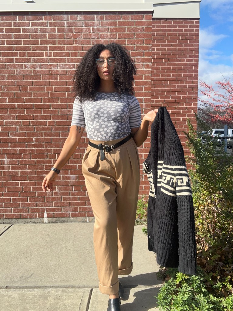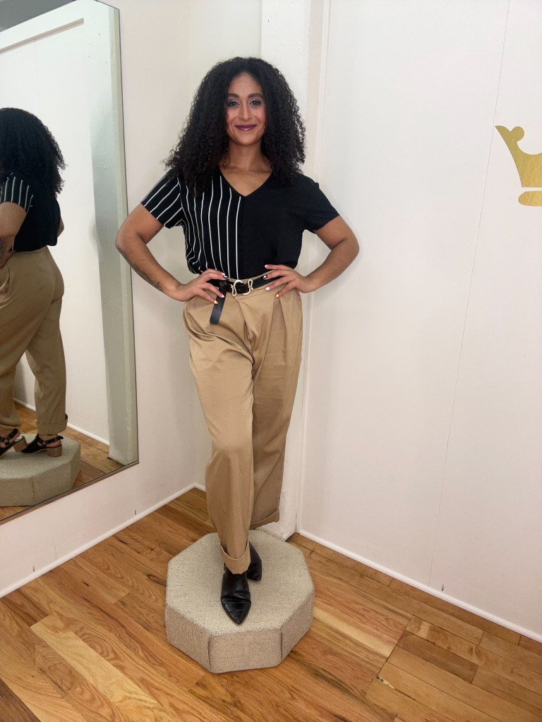 Maybe I want to wear a looser fitting trouser and a button down shirt, I may pick a white shoe to match with my blouse, adding a denim jacket to add a casual aspect to a traditional “business” silhouette! That same pair of trousers can be styled with a number of different tops and accessories to create several different looks!