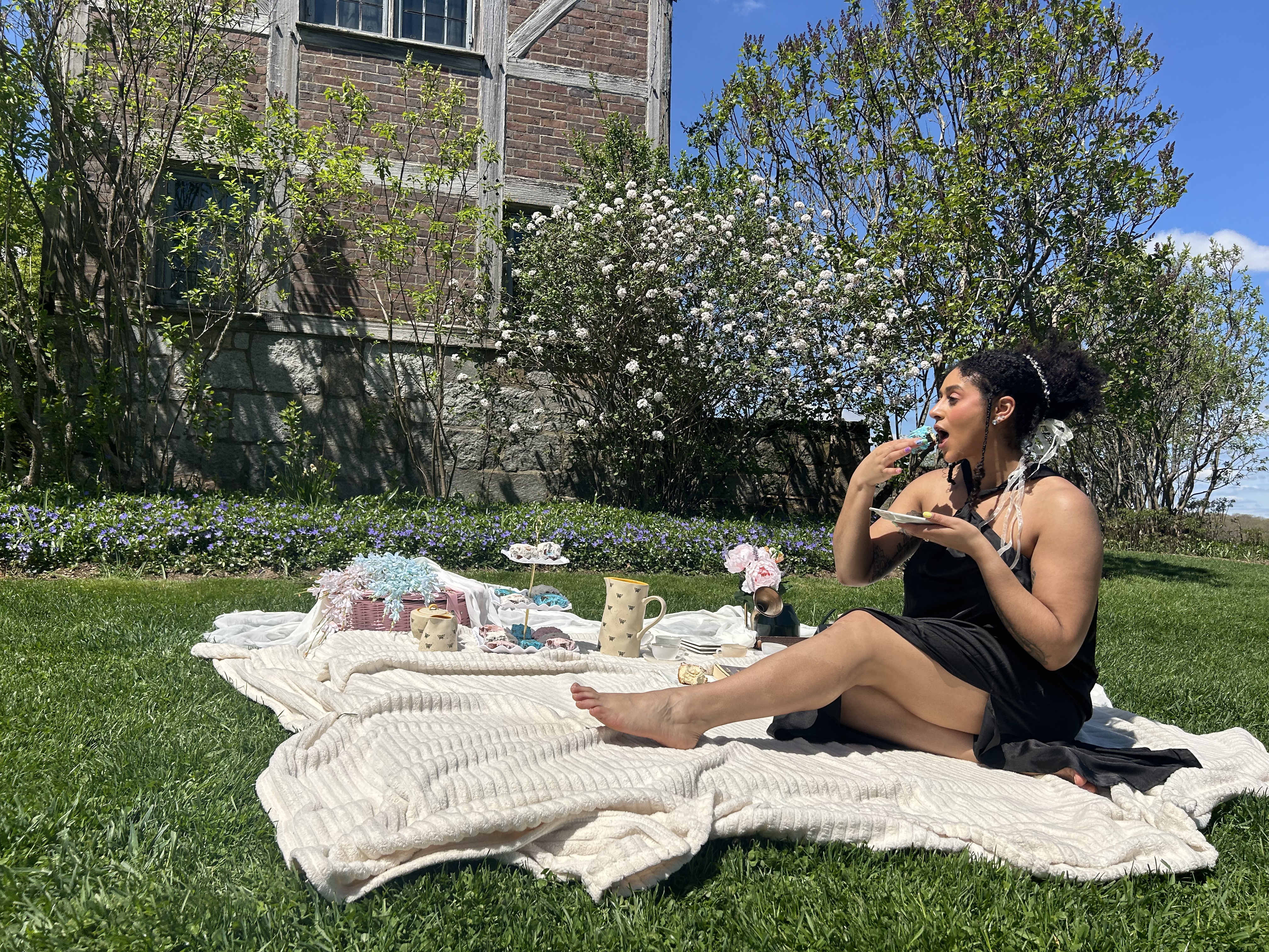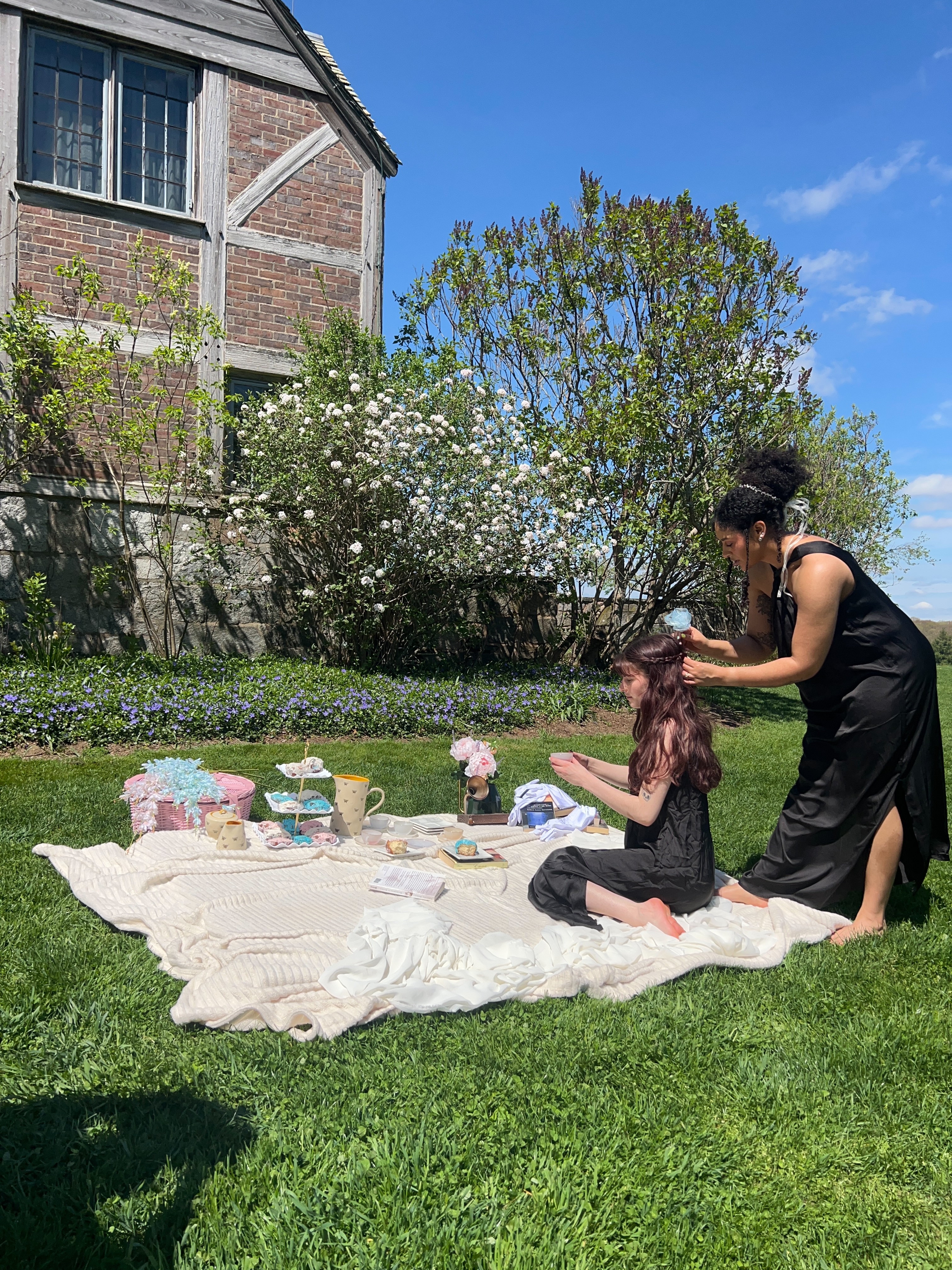 This might just be my favorite photoshoot of the year, and maybe ever? Not only am I a HUGE Bridgerton fan, but it was so much fun collecting the trinkets and staging this shoot! And this location is beyond amazing! Topsmead is an estate that became a state park that features a picturesque manor house, expansive gardens, and a schedule of events taking place all summer!