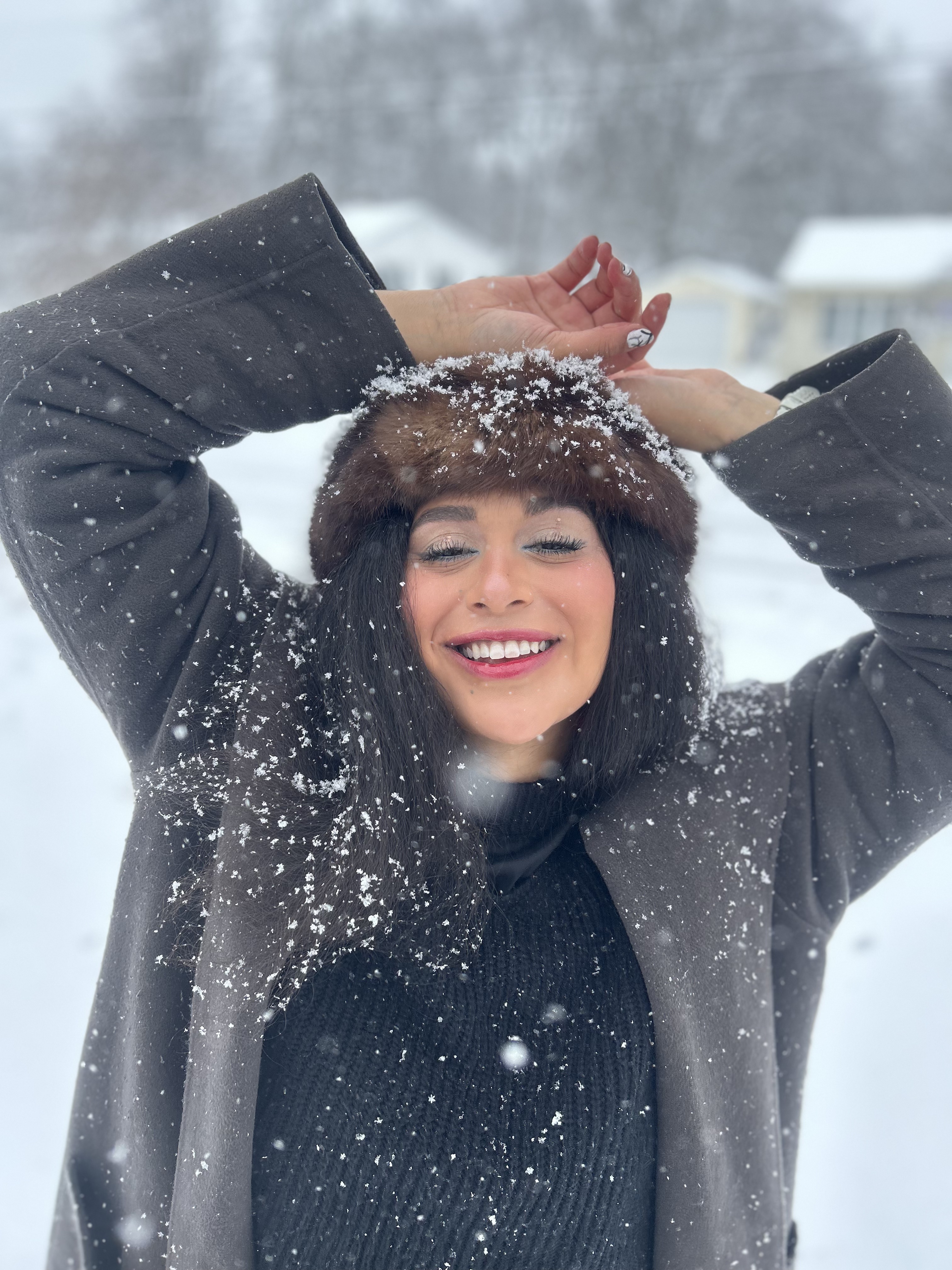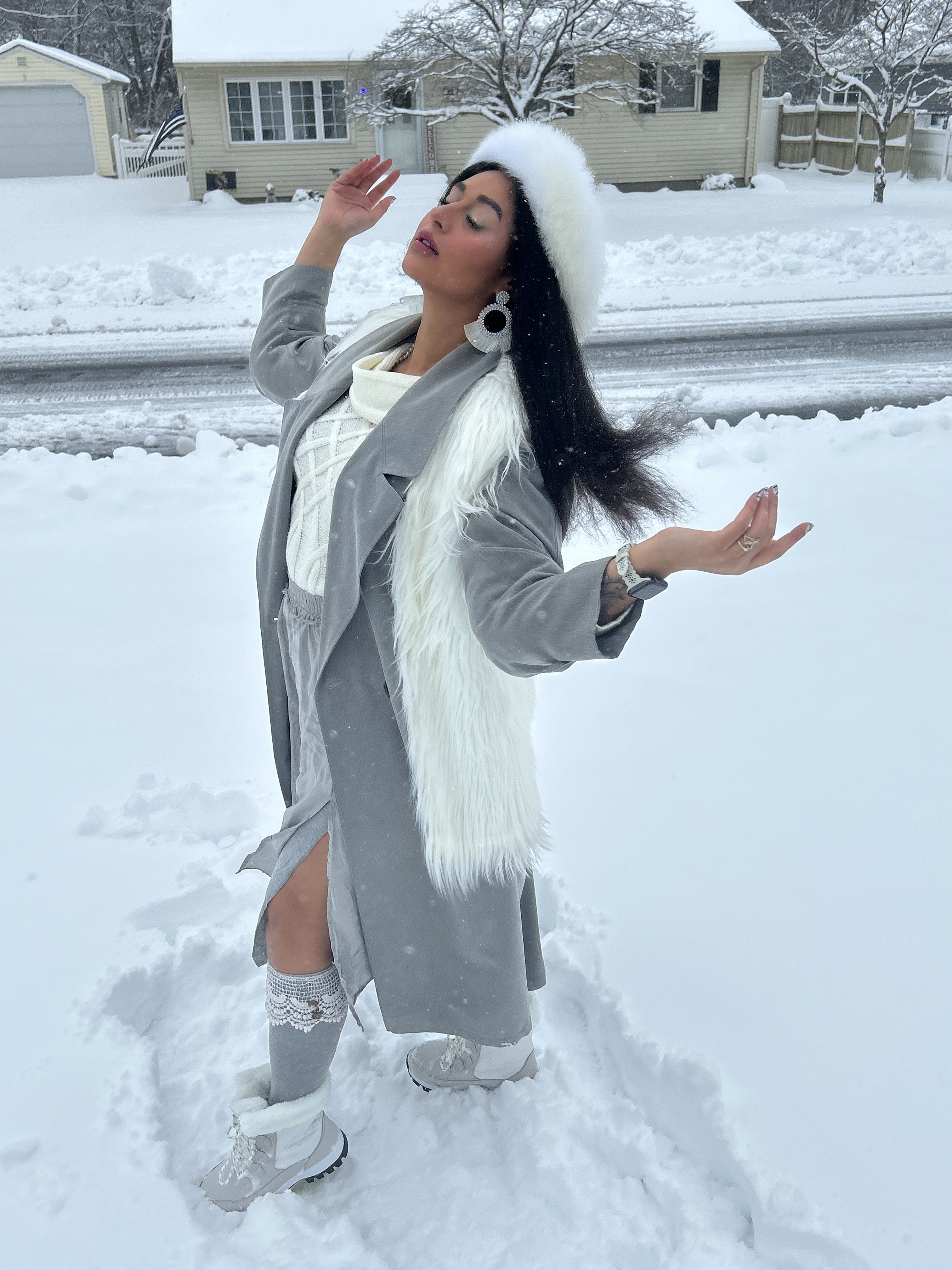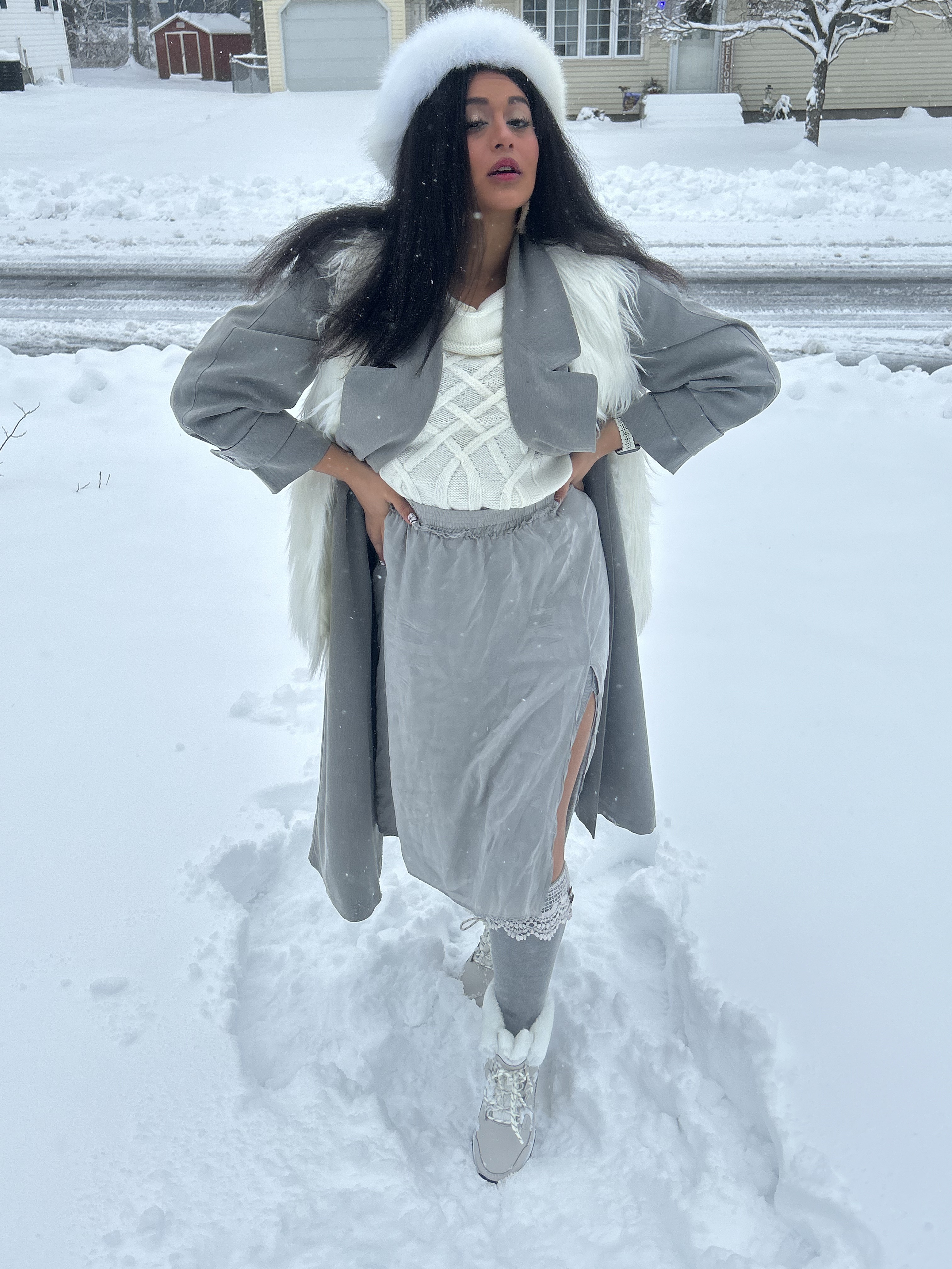 As soon as the first snow storm came through the area I straightened my hair, created my interpretation of “cold girl makeup,” and channeled two versions of the look! Which look do you prefer?!