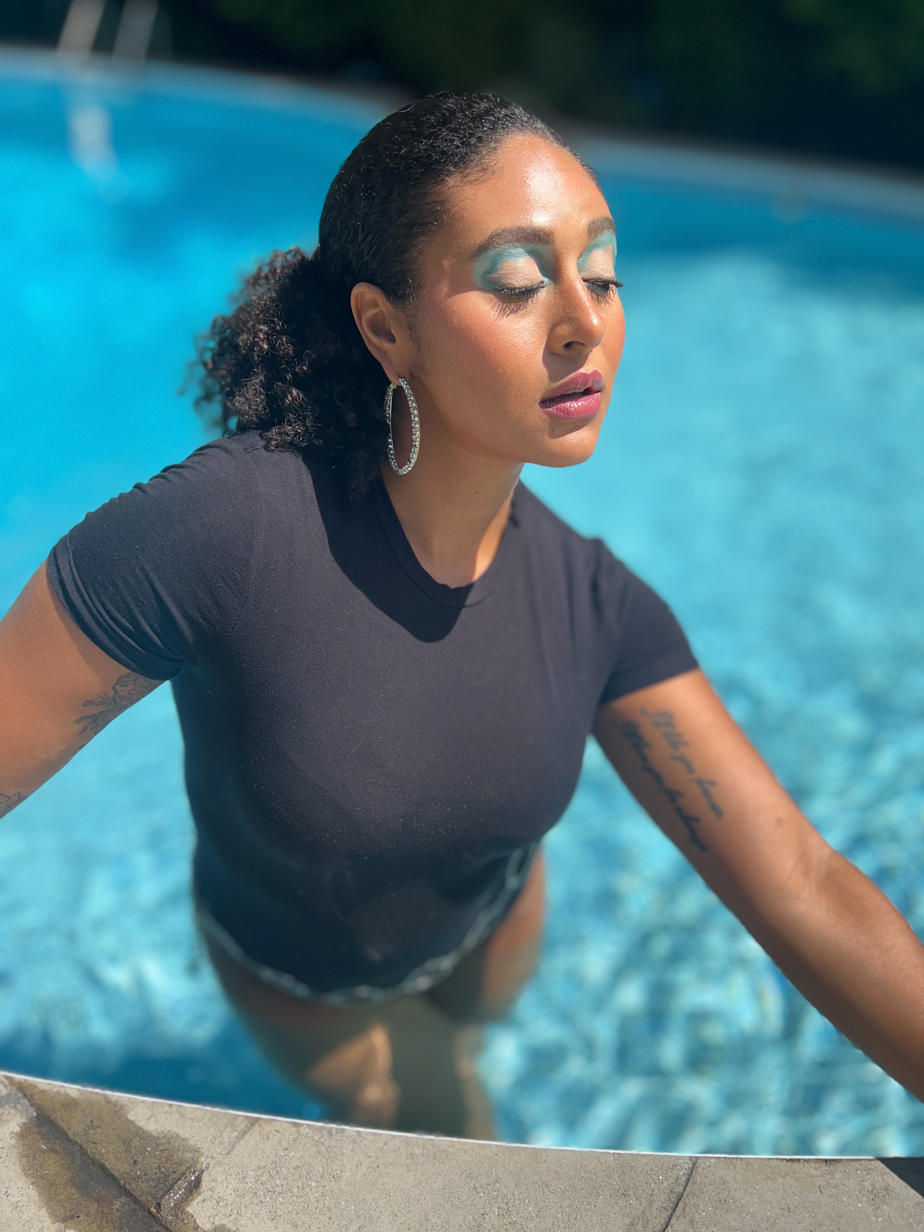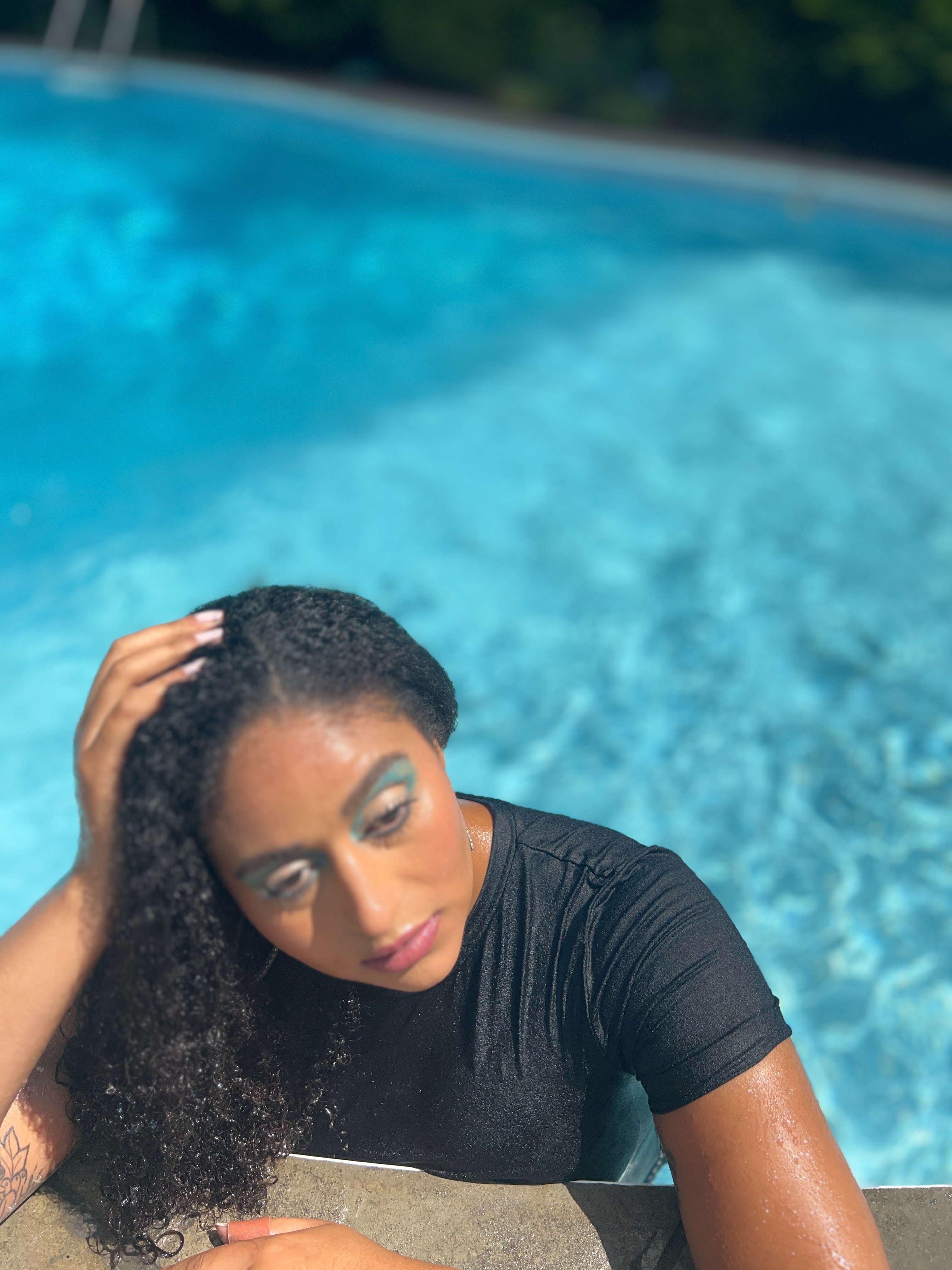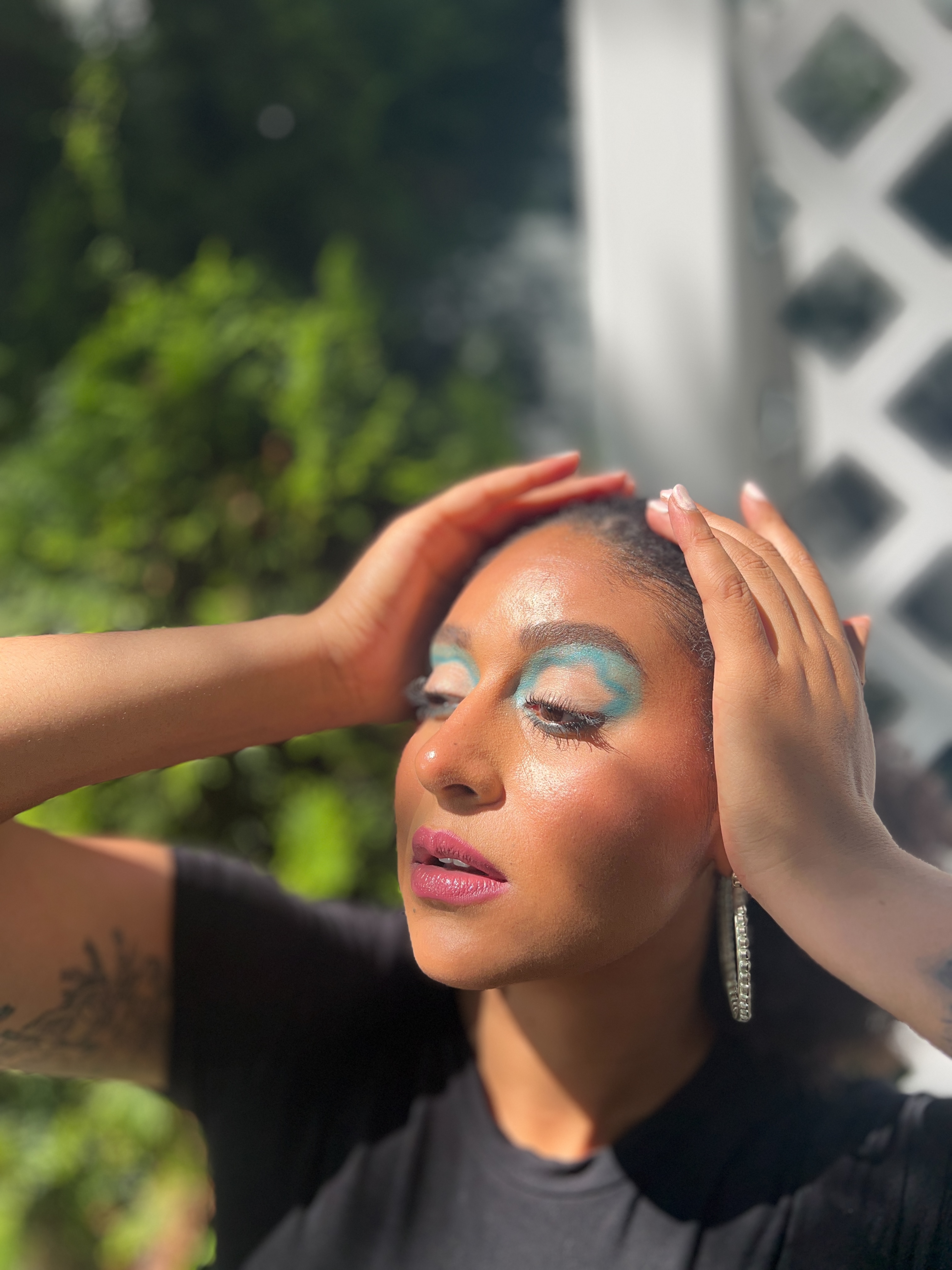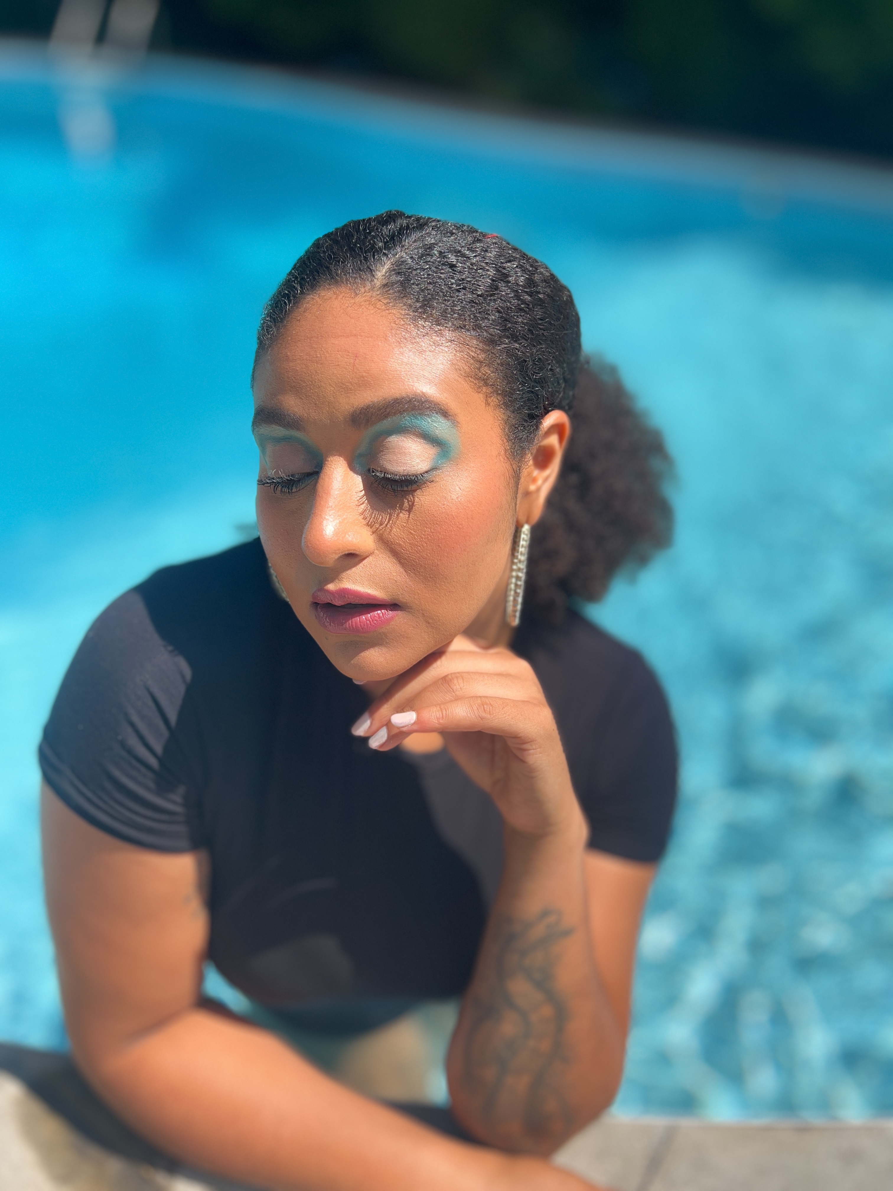 In honor of it being an Olympic summer, I created some makeup looks to channel the Olympic Games! Out of the three looks I created specifically for this shoot, I think the blue look is my favorite! Not only did this pool-inspired makeup come out way better than I had hoped but the photos ended up looking incredible!