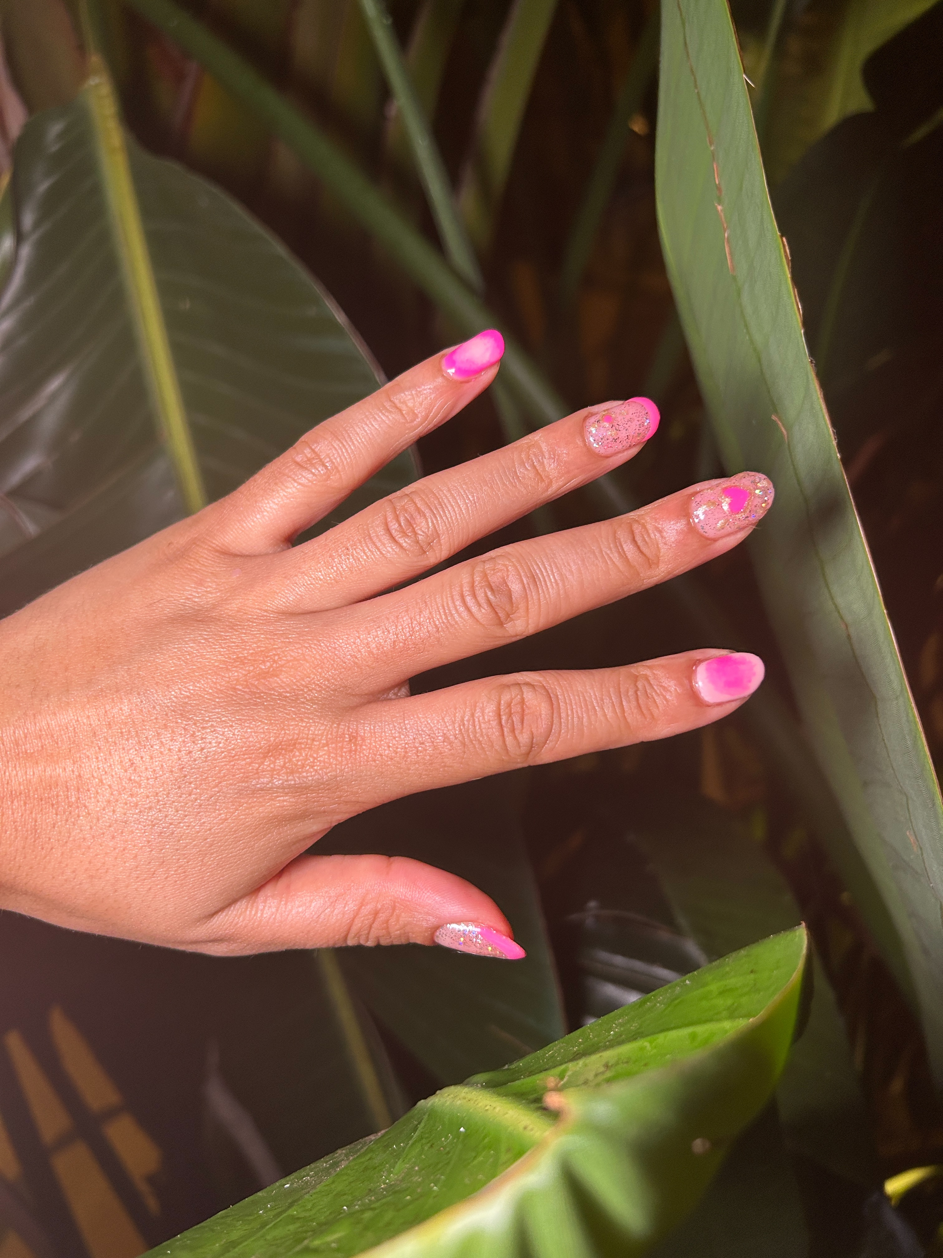 I created this manicure using my go-to brand, Le Mini Macaron, and a brand I’ve been loving more and more, Beetles! Products used are: Le Mini Macaron shades Sugar Crush and Golden Elixir, and Beetles Foundation Base Gel, Top It Off top coat, and shades #606, #611, #615, and #616!