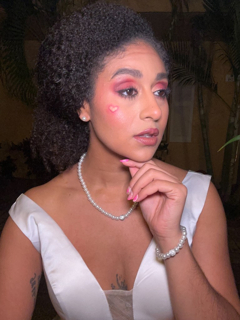 When I sat down to create this look I truly had no expectations – I just knew that I didn’t want to create my usual pink look. I ended up creating a very cool, Marie Antoinette inspired look with little hearts accenting one of my cheeks and eyes!