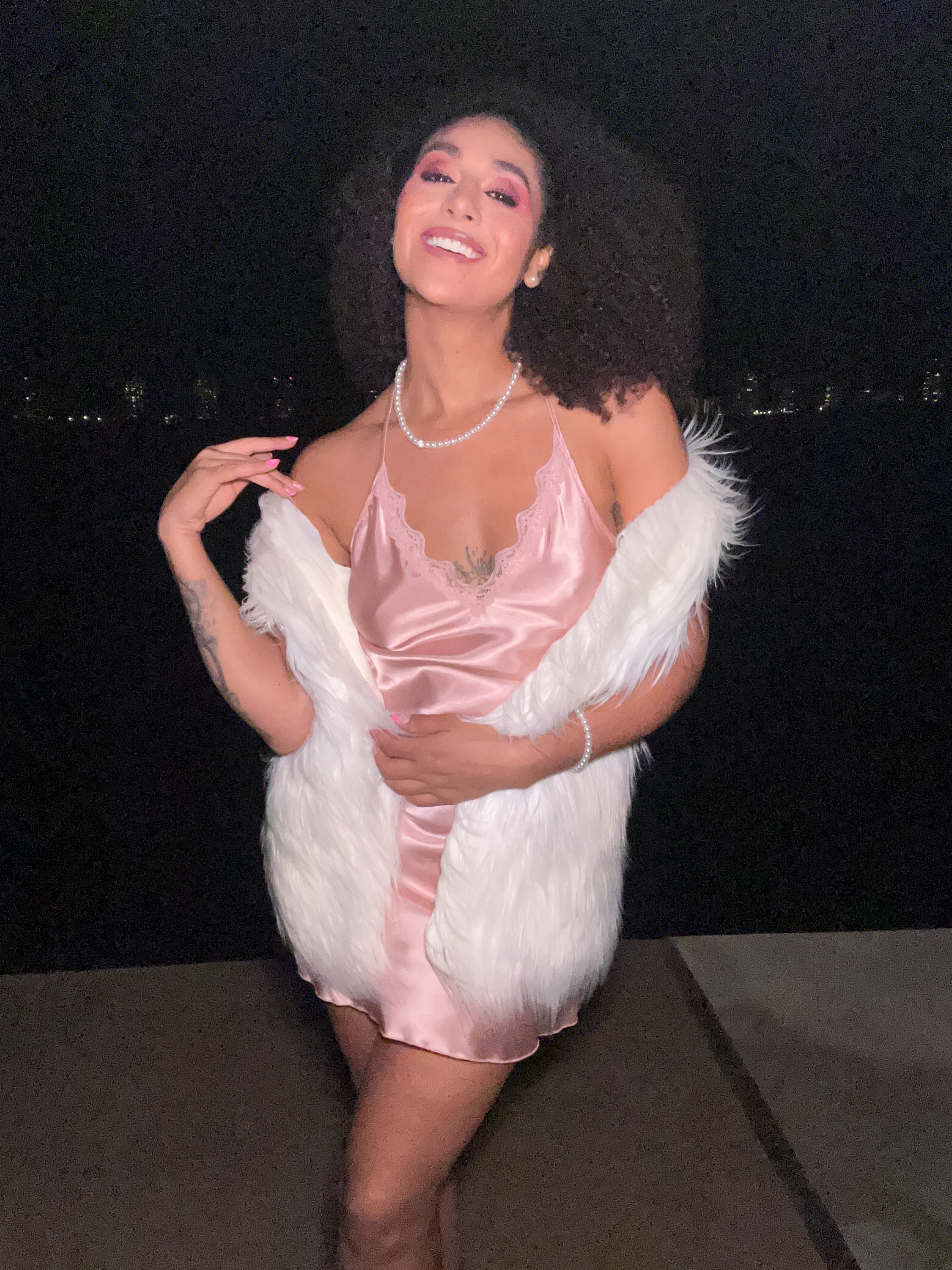 I paired this satin slip dress with a faux fur vest and a pair of white quilted booties by Guess. This was also the first time I successfully created the Diana Ross hairstyle and this is definitely one that I’ll be trying to recreate again!