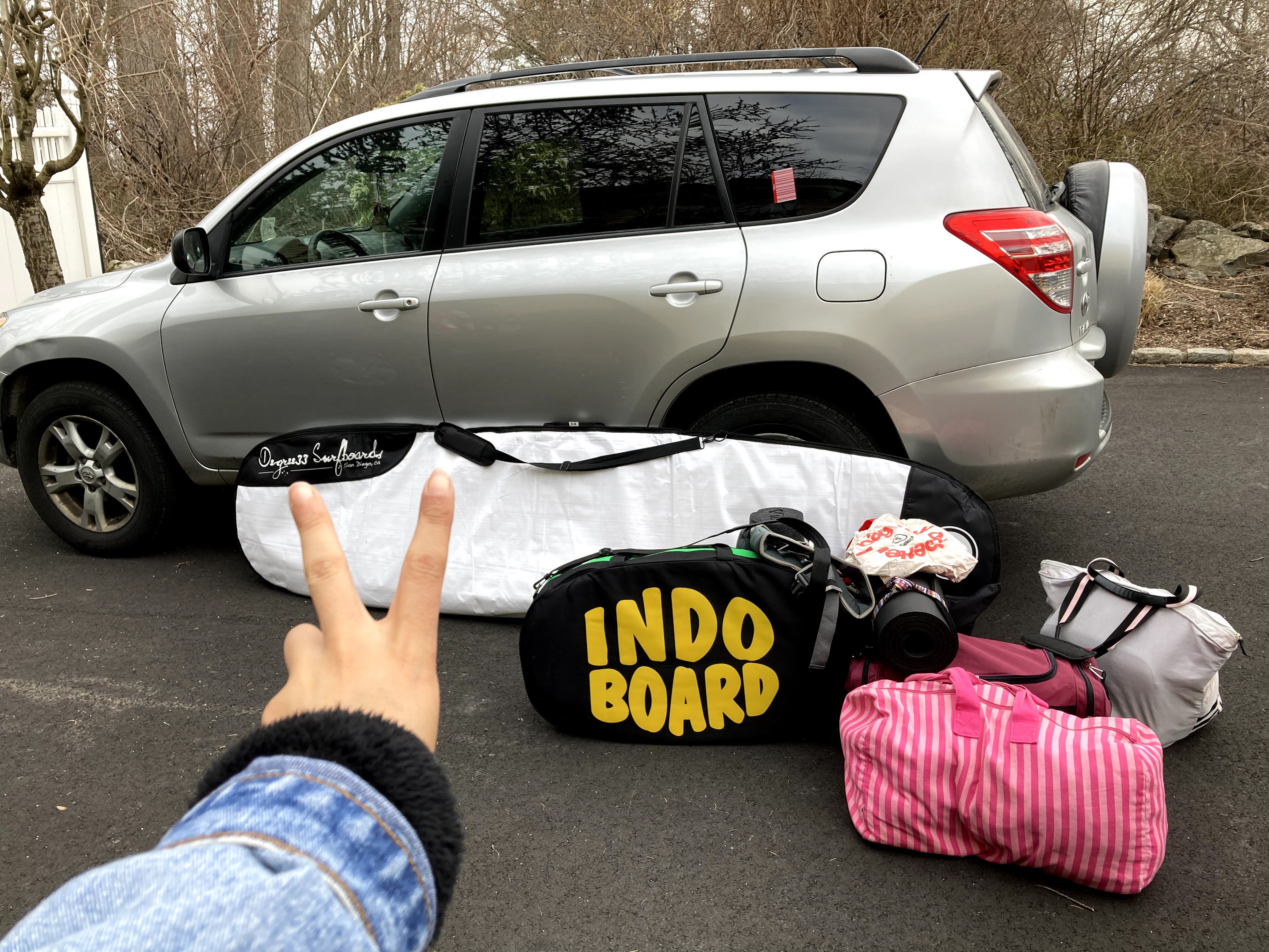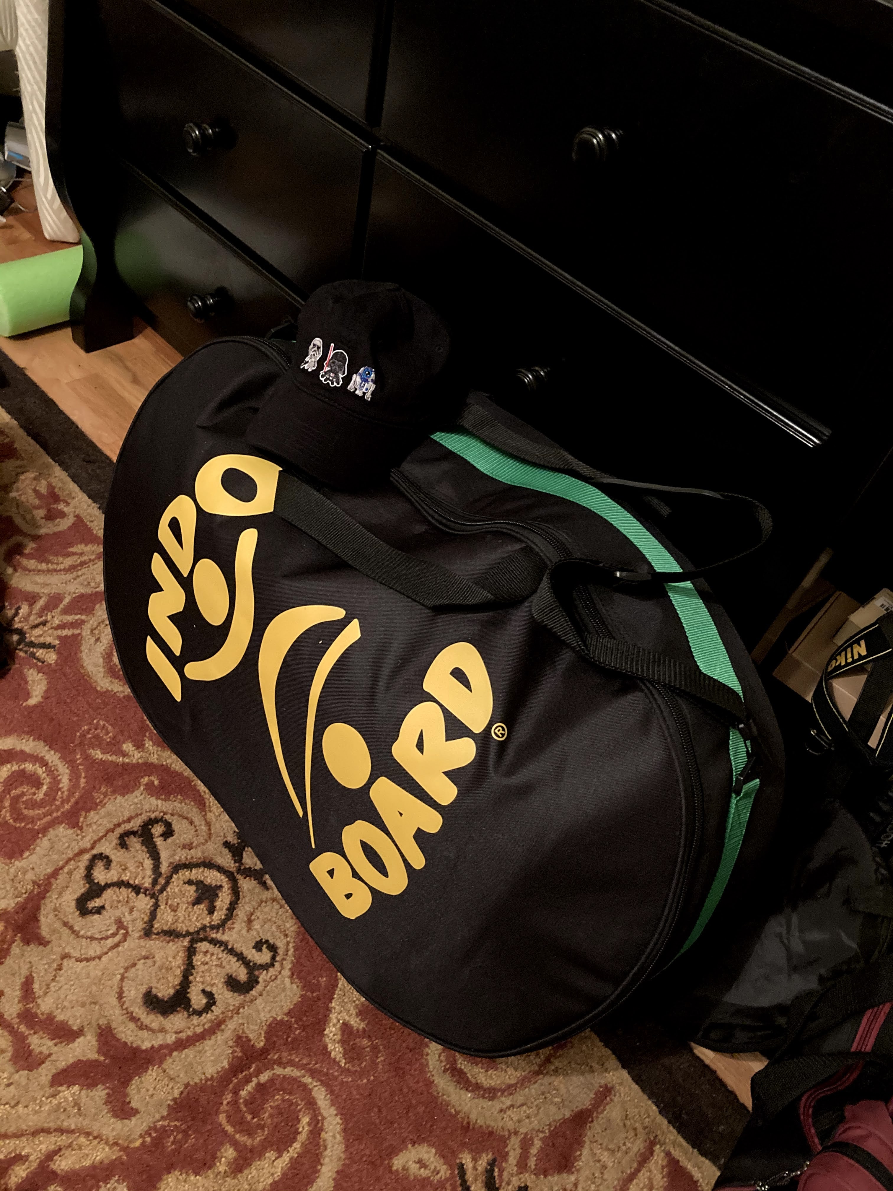 I also keep several other non-Indo Board brand items in this bag including: a jump rope, two standard sized yoga blocks, an ab roller, a set of athletic bands, and my boxing gloves (I used to train in boxing when I was in high school, but I’ve never competed!). I don’t always bring my Indo bag into the gym, but I do like to keep it in my car in order to do at least one surf workout a week!