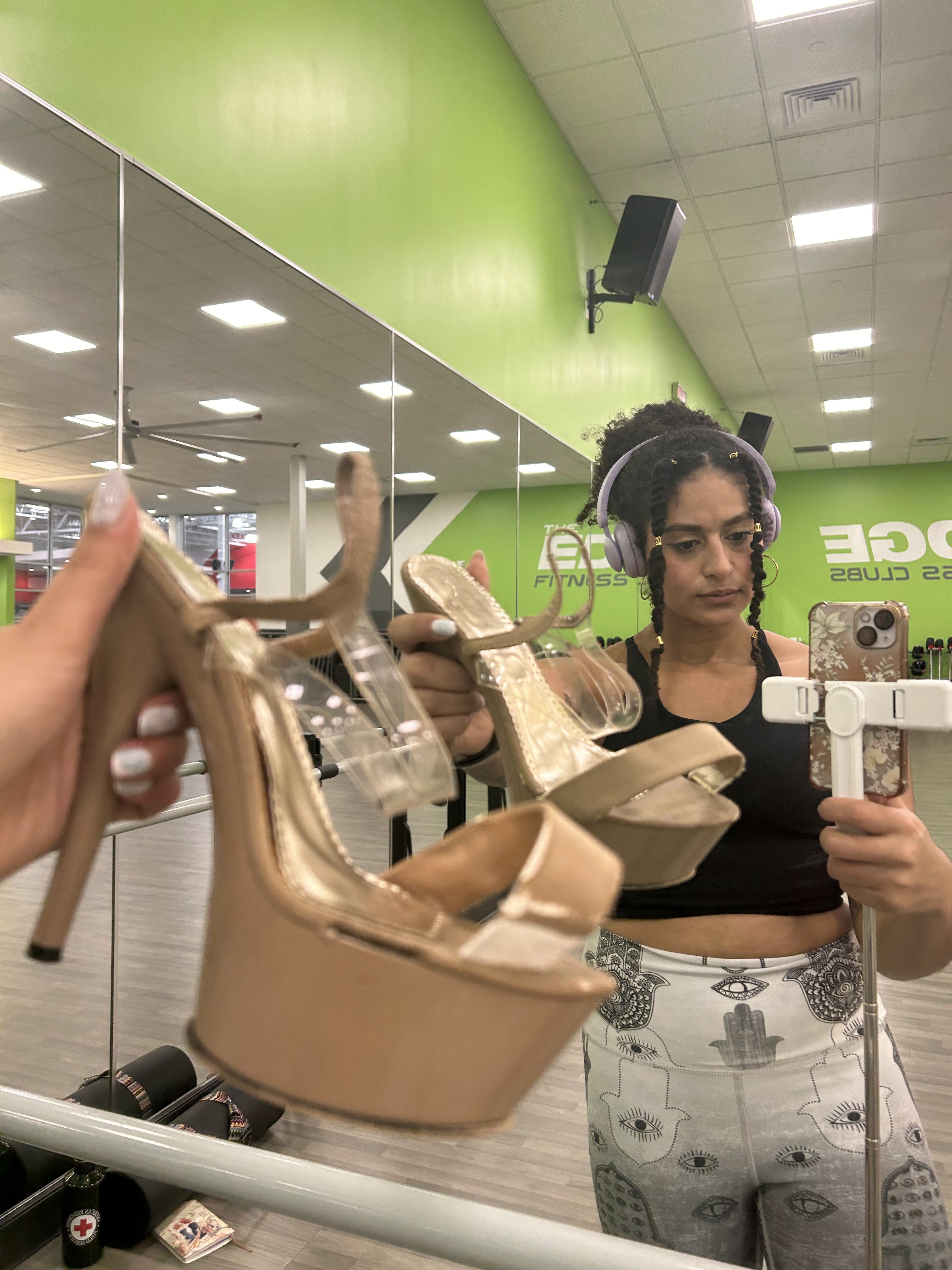 It may seem counterintuitive to keep a pair of high heels in my gym bag, especially after explaining my preference for a running shoe! But as a pageant titleholder and contestant, it’s important to train for every aspect of the competition and lifestyle – including walking in heels!