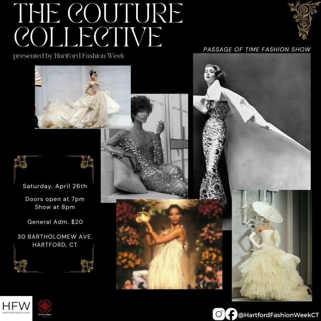 The April 2025 Hartford Fashion Week schedule was as follows: Hartford Fashion Week 101 and Elemental Fabrics held on Sunday, April 20th; two Spotlight Fashion Shows, held on both Monday, April 21st, and Tuesday, April 22nd; Fashion Creatives held on Wednesday, April 23rd; Fashion is Art held on Friday, April 25th; and Couture Collective held on Saturday, April 26th.