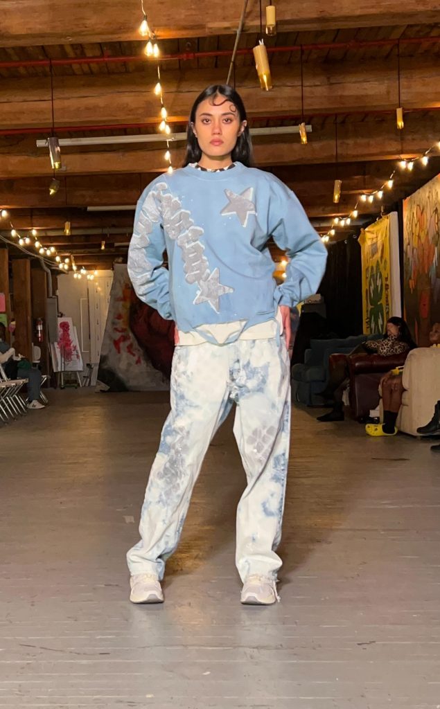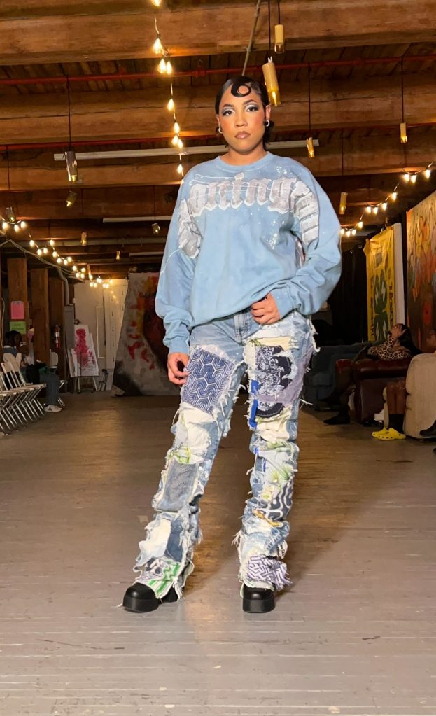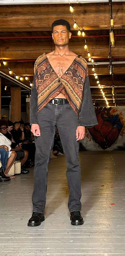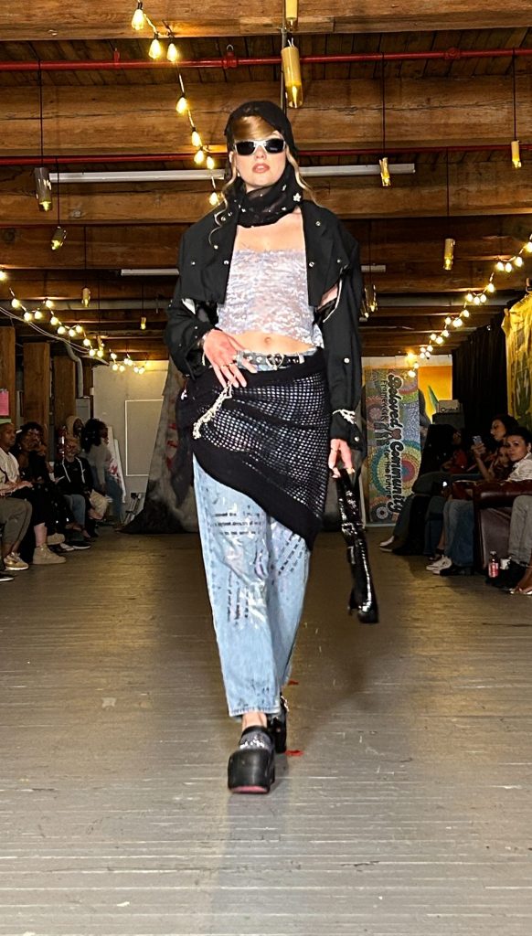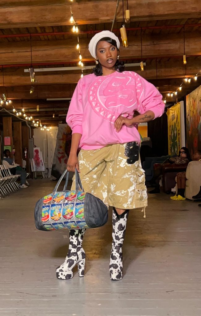 Stonington brought an edginess to streetwear, combining the silhouettes typical to the streetwear aesthetic with the grungy vibe of distressed denim and flannel patchwork. But, it was the pink hoodie look that truly stopped me – that Capri Sun duffle bag and cow print boots were speaking to me!