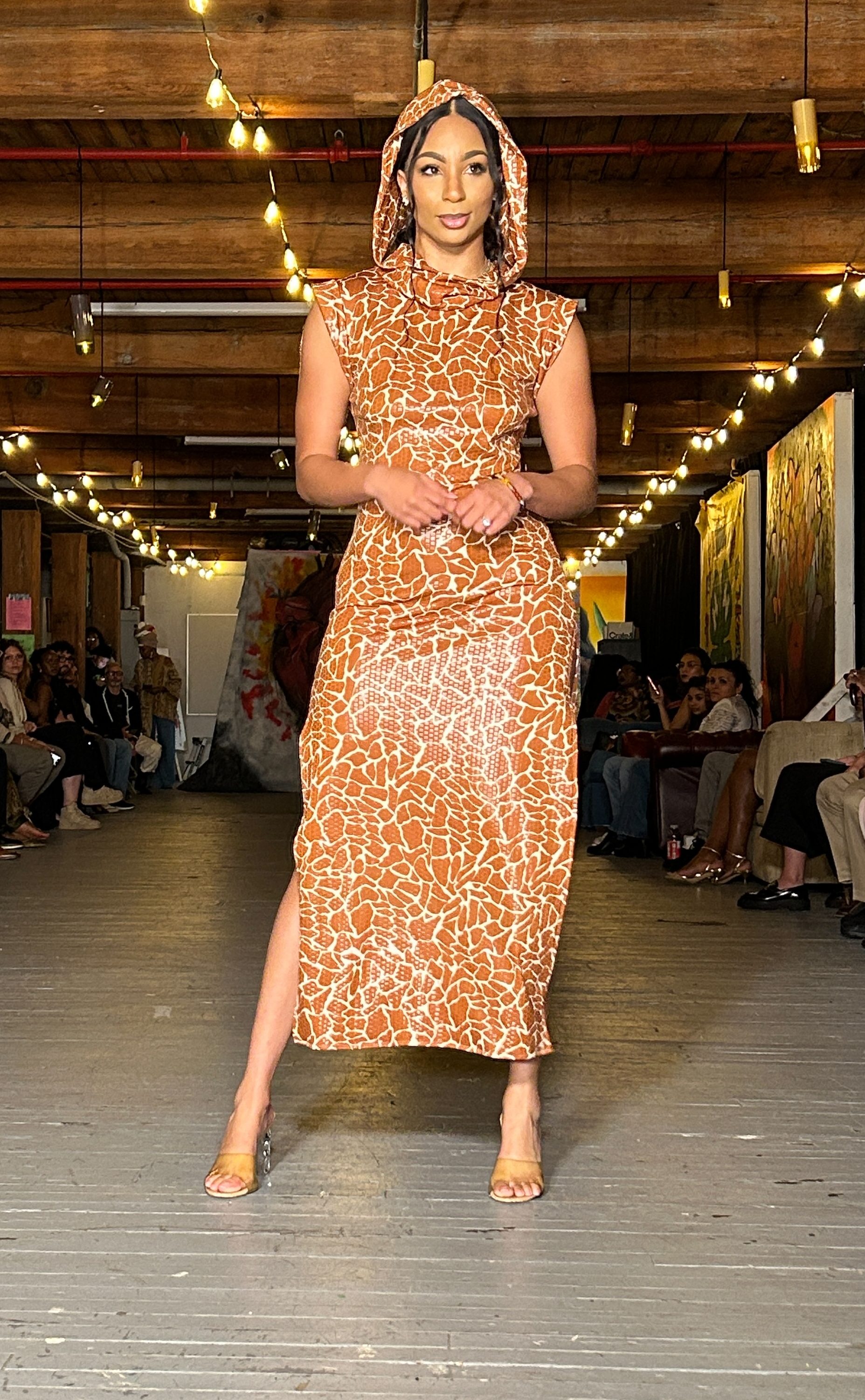 I love the overall juxtaposition of evening wear meets daytime, injecting luxury into your everyday routine! Take for example the opening look, a beautiful floral print suit – ideal for adding a flair to your office attire – made perfect for running errands or catching flights, ala the joggers. Or the hooded, camel colored snake print, midi dress shown above, which I’ll be dreaming of for years to come!