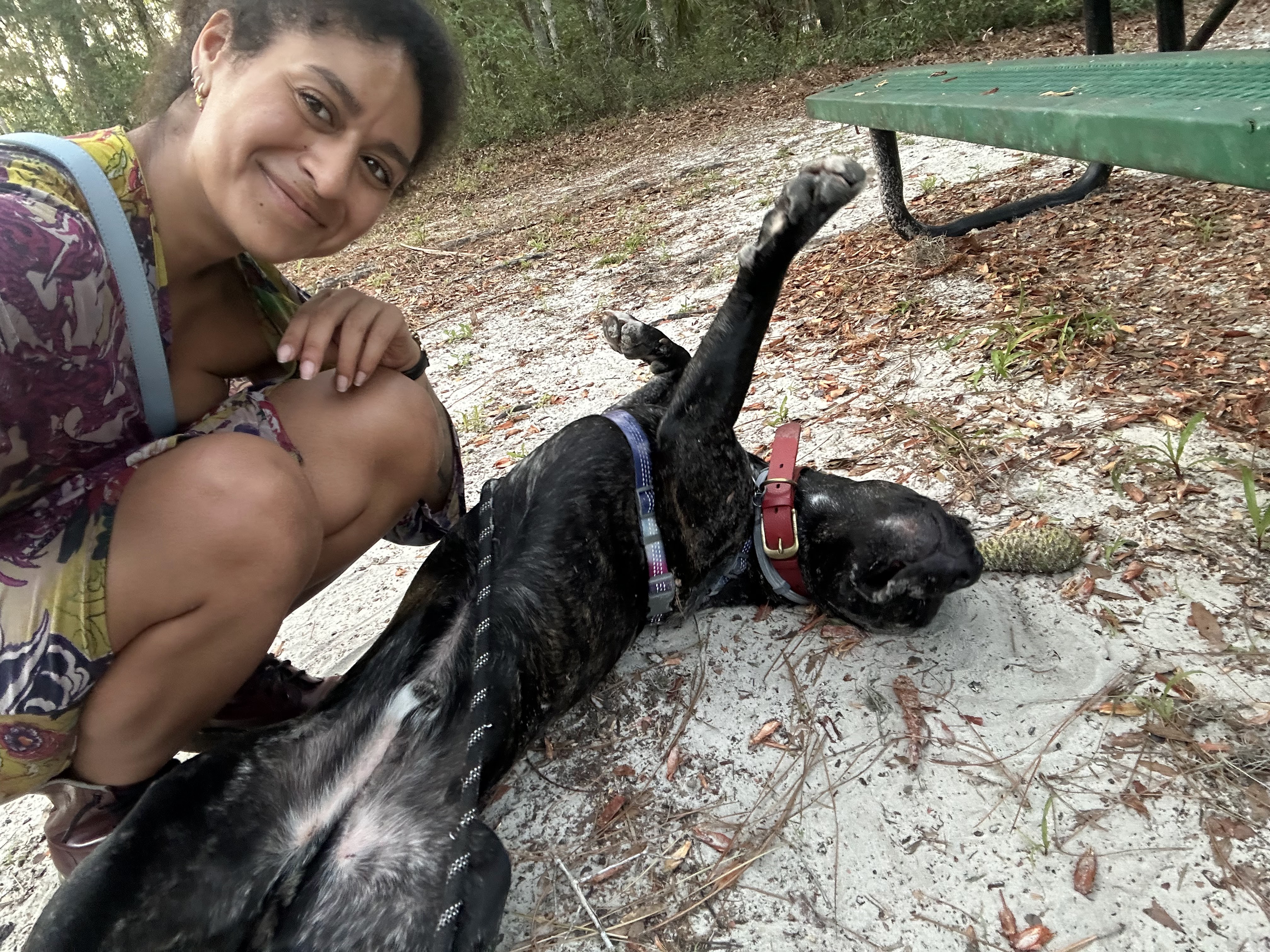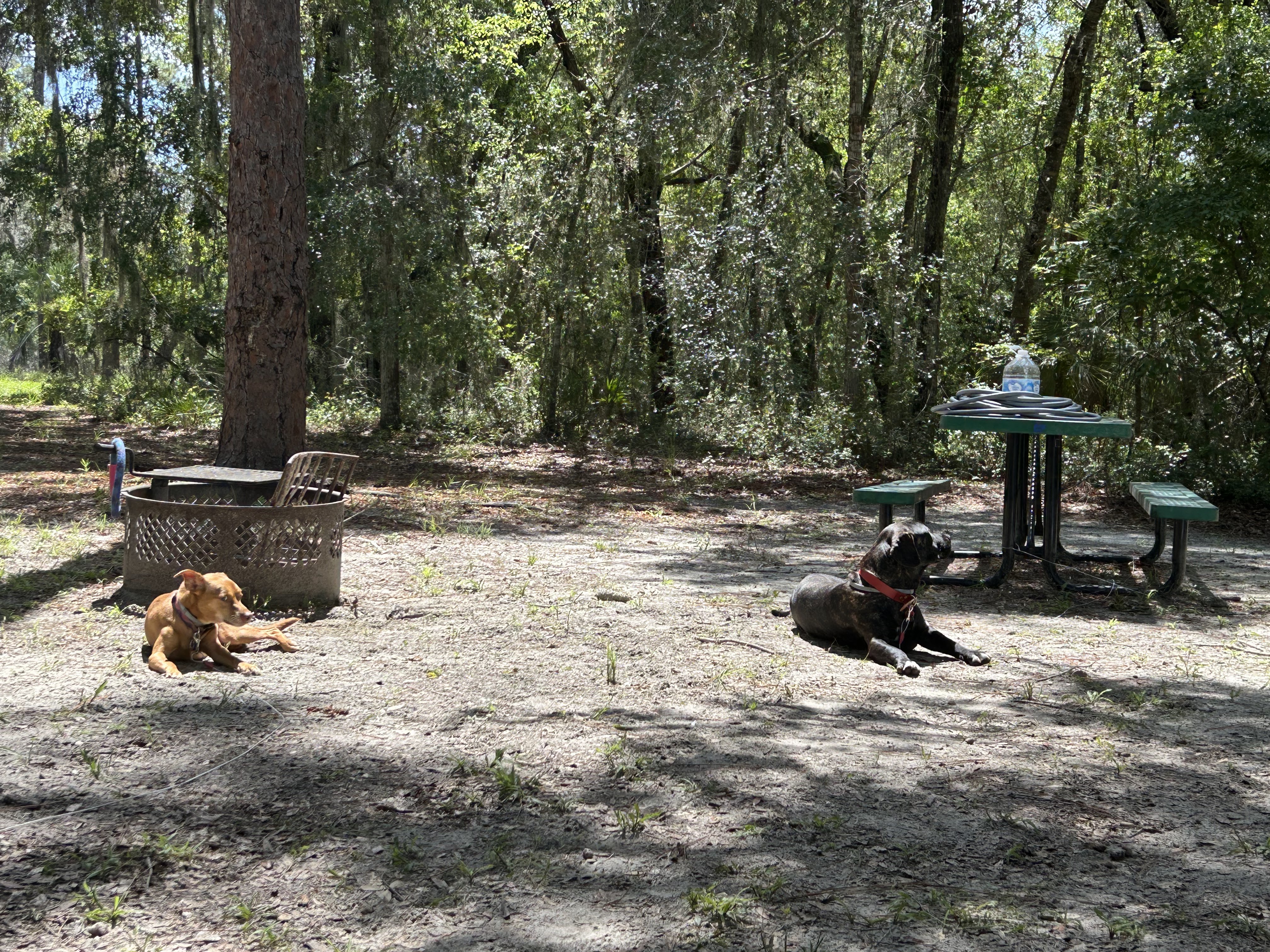 We were in Florida in the middle of a heat wave, in an area where the dogs were not allowed in the natural bodies of water. Because we were in a forest we saw several herds of deer, and with deer come ticks – a quick way to put your dog at risk. My mom and I both prefer to use Seresto brand collars but we were still pulling ticks off of the dogs (and off of our own legs) daily.