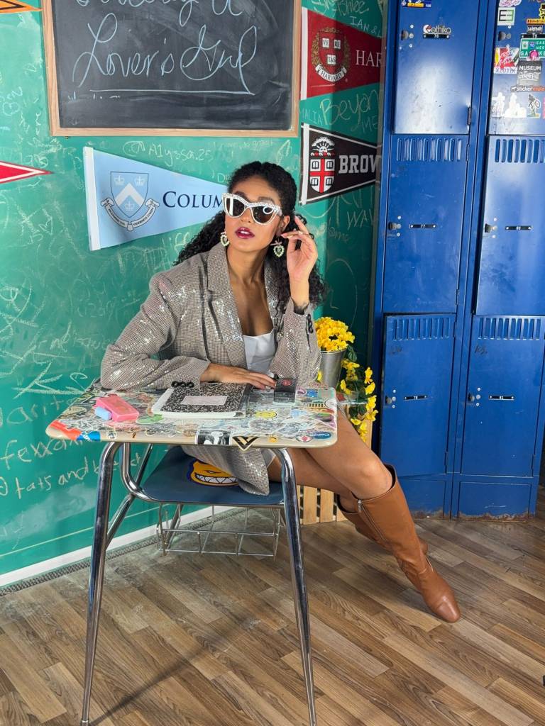 Unfortunately, I couldn’t find many examples of the backdrops (there were two prominently featured in their Instagram tagged photos: the red Rock n’ Roll room, and the classroom set), so my initial instinct was plan five outfits with each focused on one color – white, black, red, blue, and yellow. But in true Taylor-fashion, I waited until the day-of to pack my shoot bag but it ended up working out in my favor!