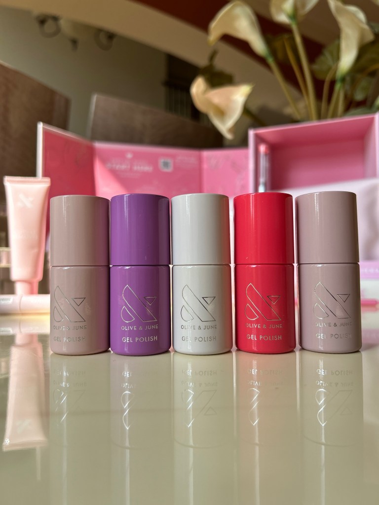 Also included in my package were five shades of gel polish – Field Day, Petal, LHG, CDJ, and KAG – and the Olive & June Peel-Off Gel Base polish!