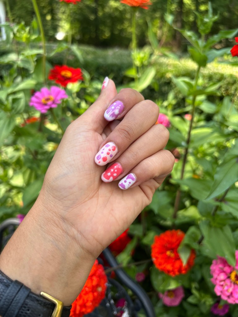 Because I was gifted this entire kit, I was essentially doing a blind opening on the polish shades I would receive. At first I wasn’t sure if these would be the best shades for my skin tone, but after crafting this fun 90s-inspired art, I actually really like these colors and can’t wait to use them in more designs!