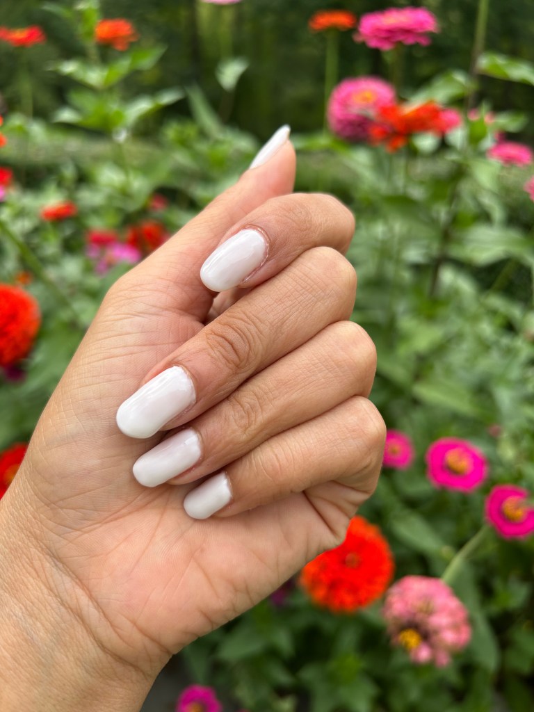 Like I said above, I tested out the peel-off base first and to my delight and surprise, this design had peeled off completely within a few days. This allowed me to test the regular base polish as well, and I created the perfect “clean girl aesthetic” manicure using the shade LHG!