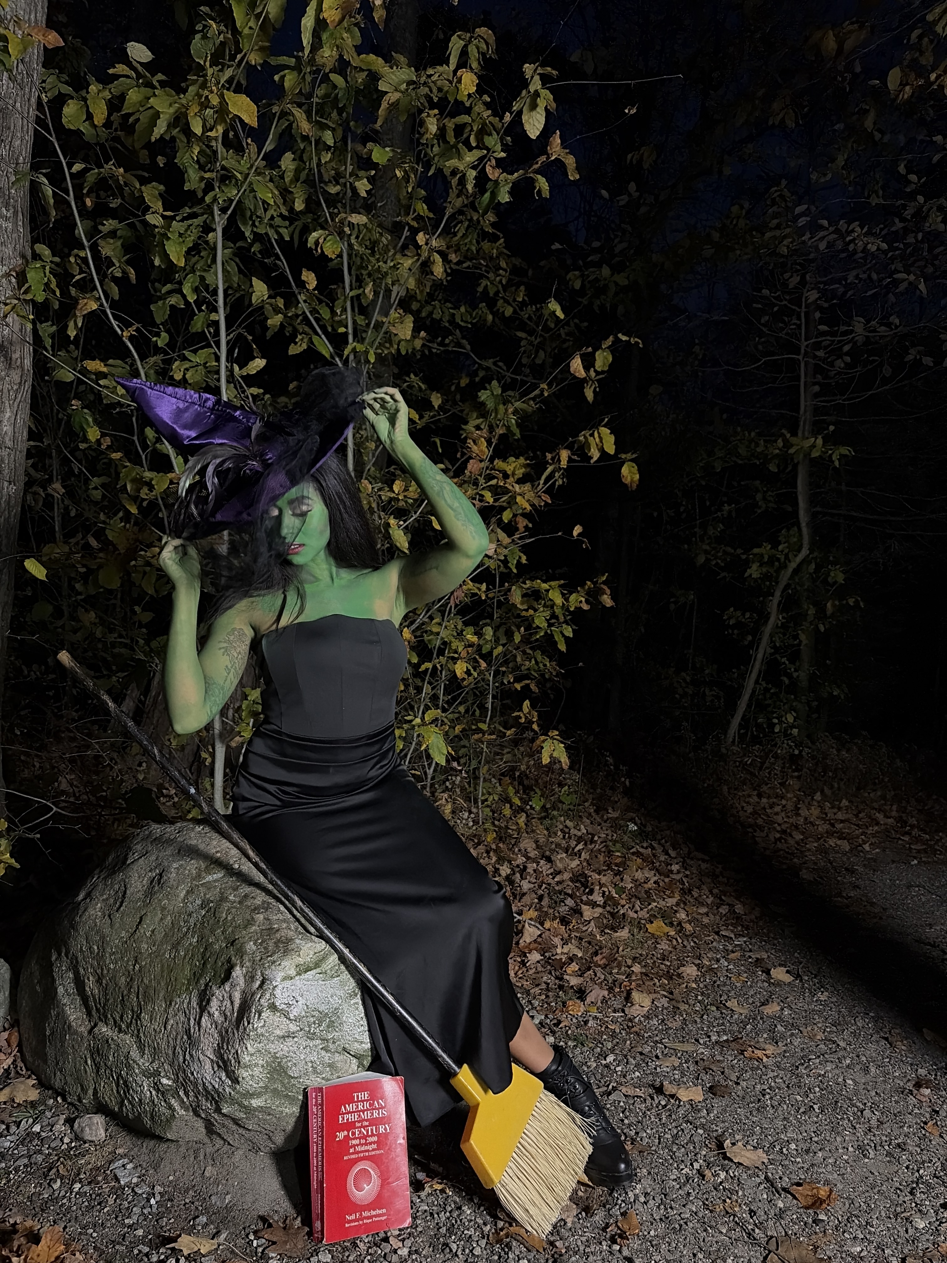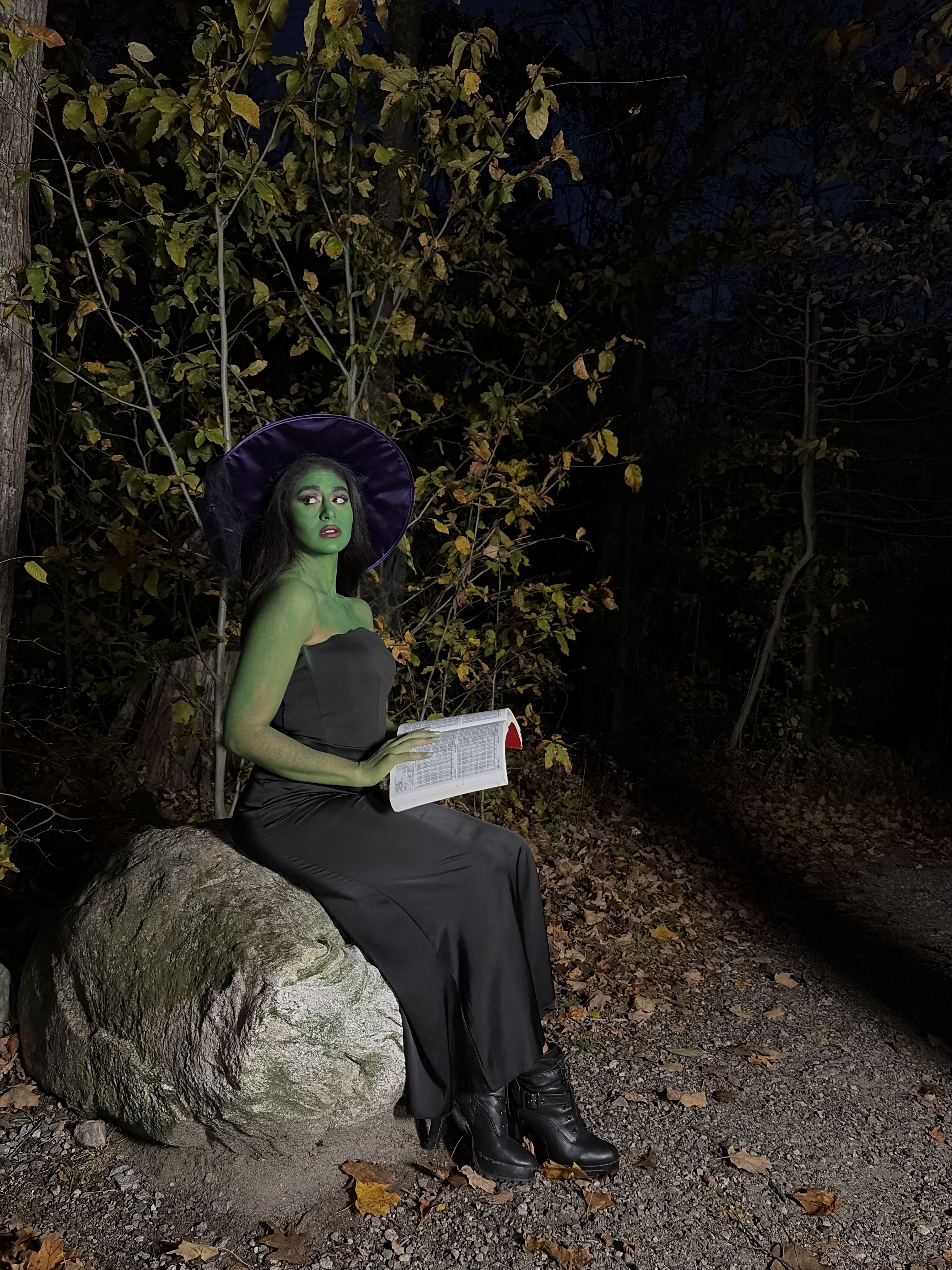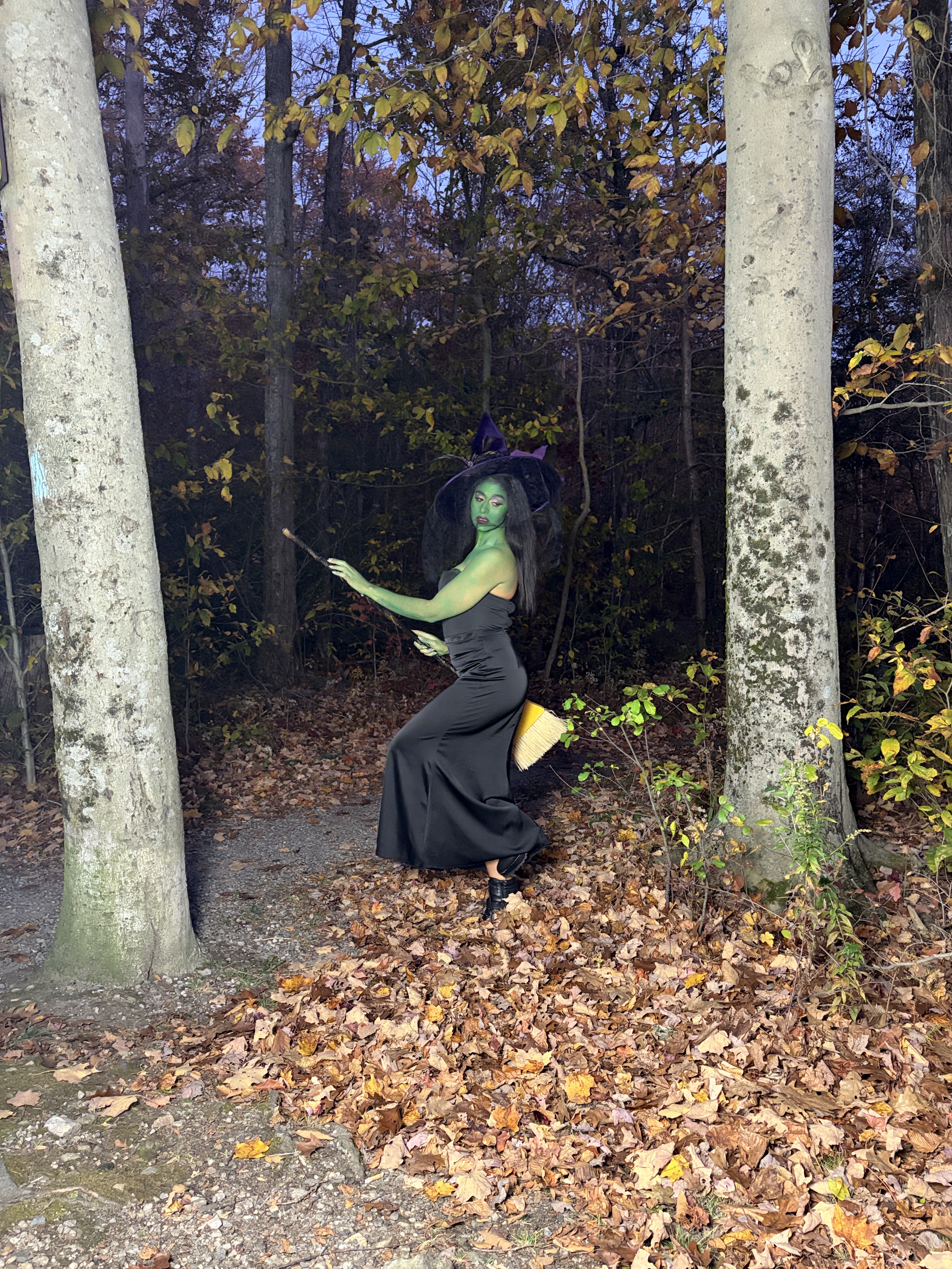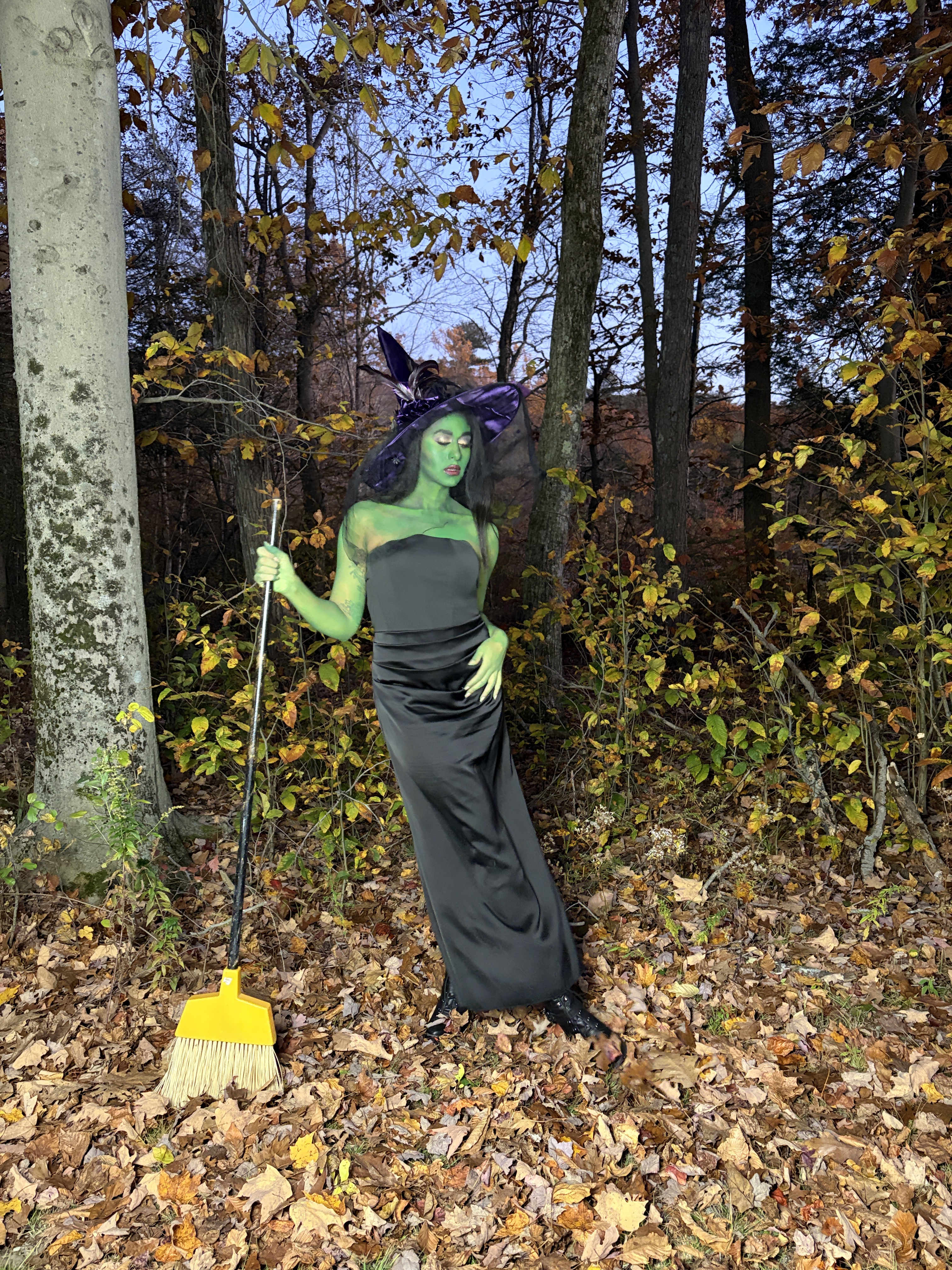 Overall, I think these photos – captured as sunset at Burr Pond – came out so cool, but I don’t think I did my best work on Elphaba’s eye makeup. Partially due to the fact that I didn’t paint my eye area green (I’m not sure why I didn’t do that…), and partially because the Wicked Witch of the West doesn’t really wear makeup. I ended up doing a gold lid and a smoked out crease line, opting for a pair of House of Lashes’ “Femme Fatale” lashes!