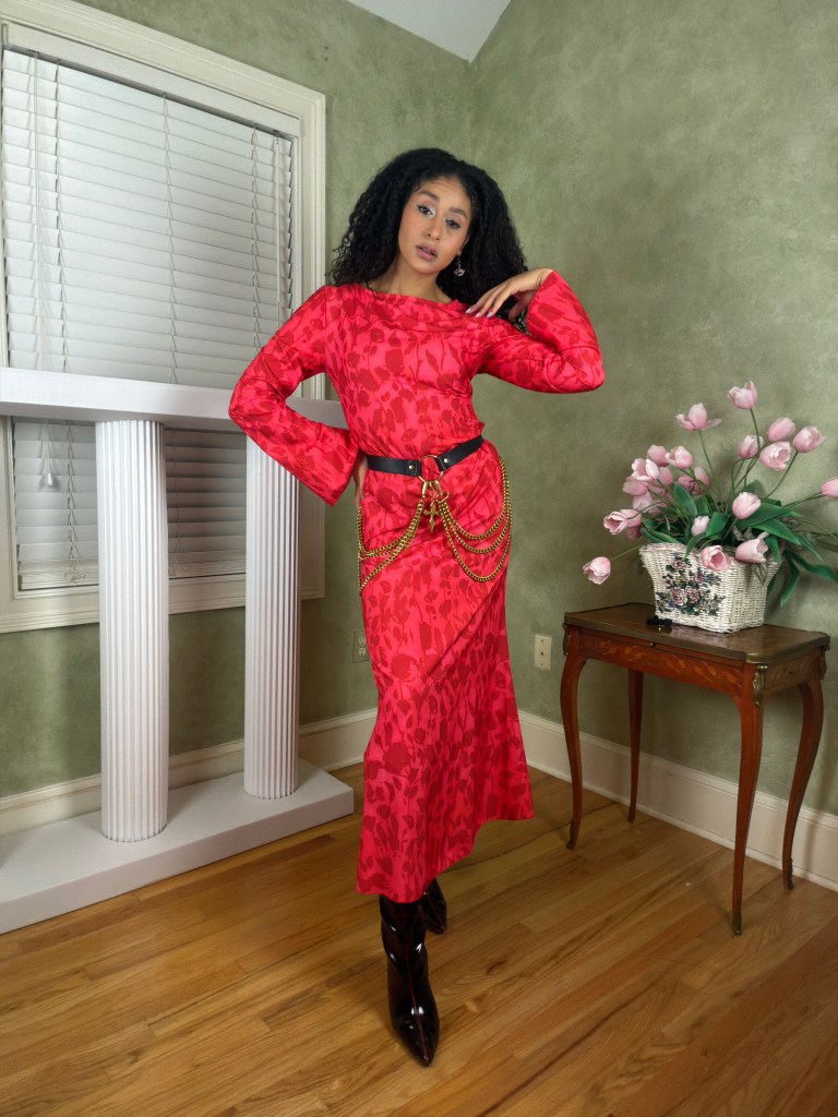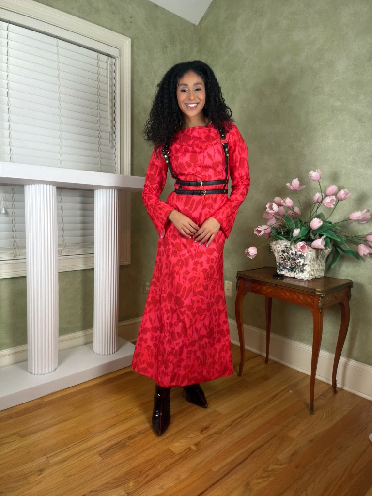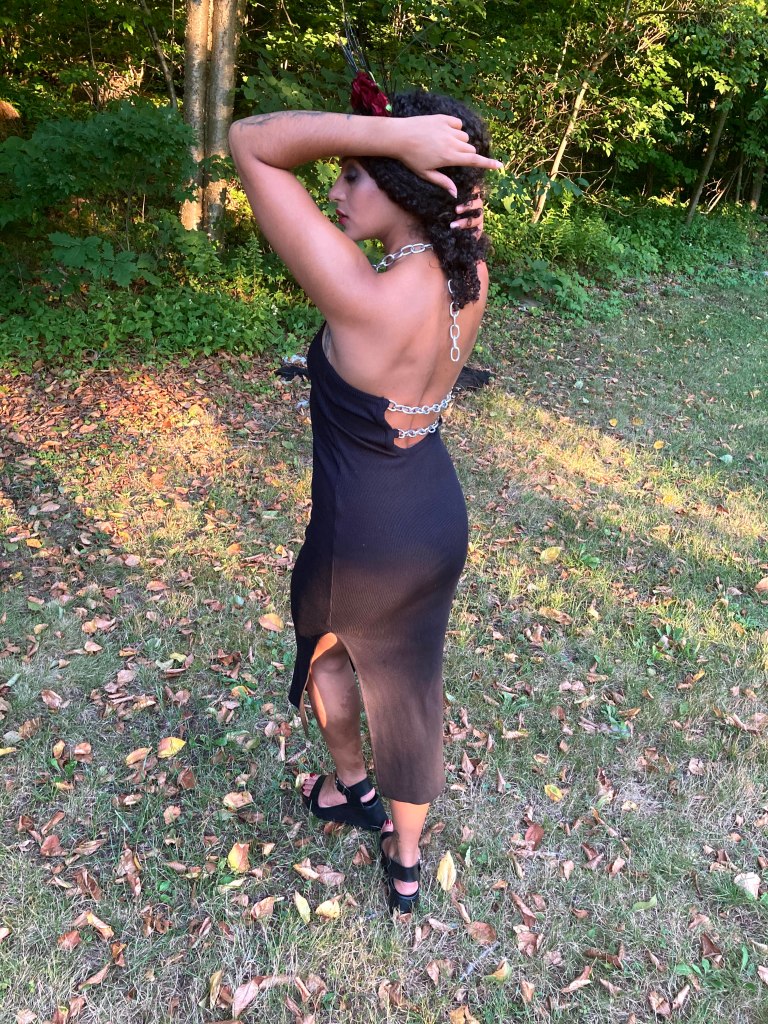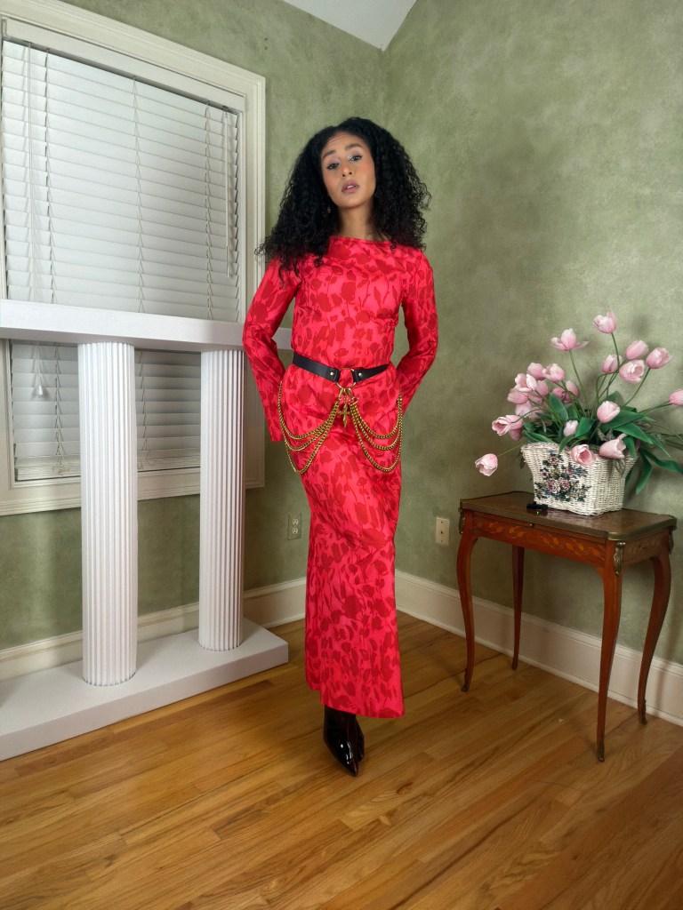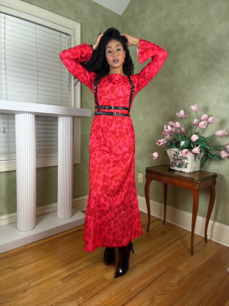 On initial try on I wore the Vessita dress with both the harness and the belt, and while I think the harness perfectly elevated the dress, I think the pattern is too conflicting with all of the chain details on the belt.