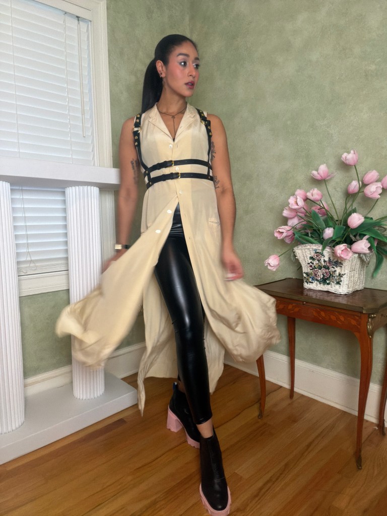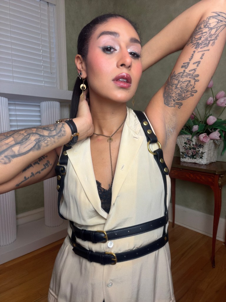 I think it’s safe to say that I am now obsessed with wearing a harness! And through this styling process, I’ve realized that my aesthetic has really evolved into an elevated version of the grungy, quasi-Buffy the Vampire Slayer look I rocked in college.