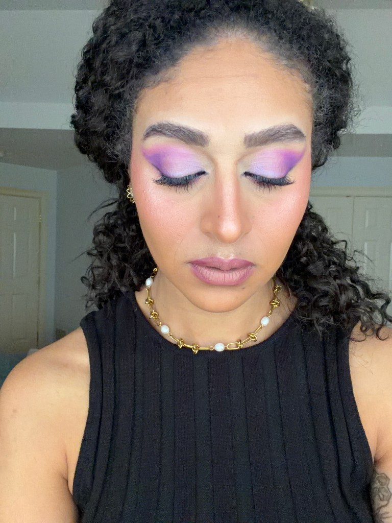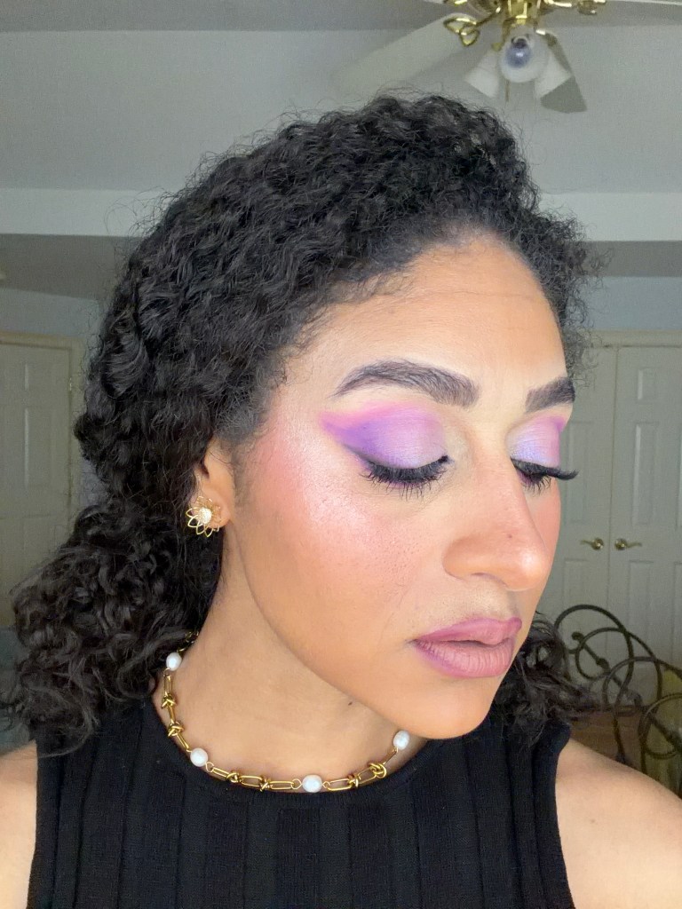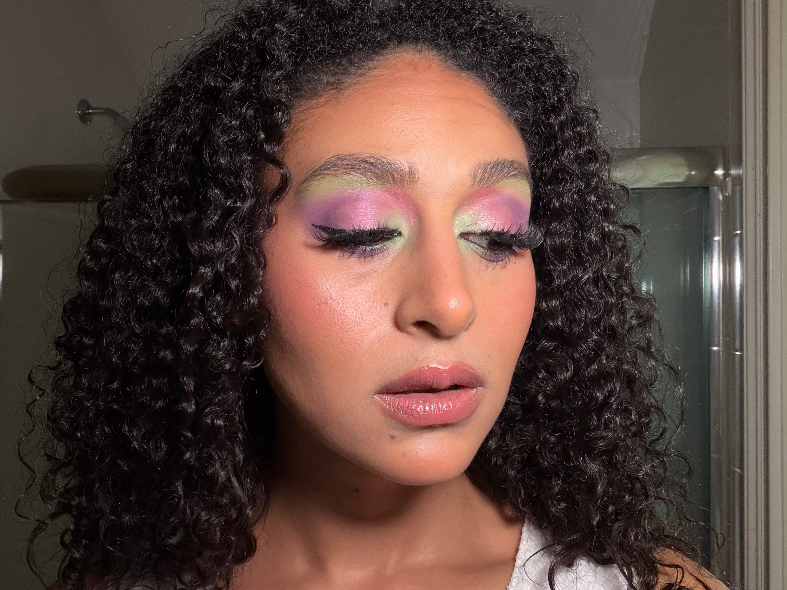 We started off strong with a holiday makeup look! This year for Easter I embraced the spirit of a dyed egg, creating this purple-pink-and-green tie dye effect!