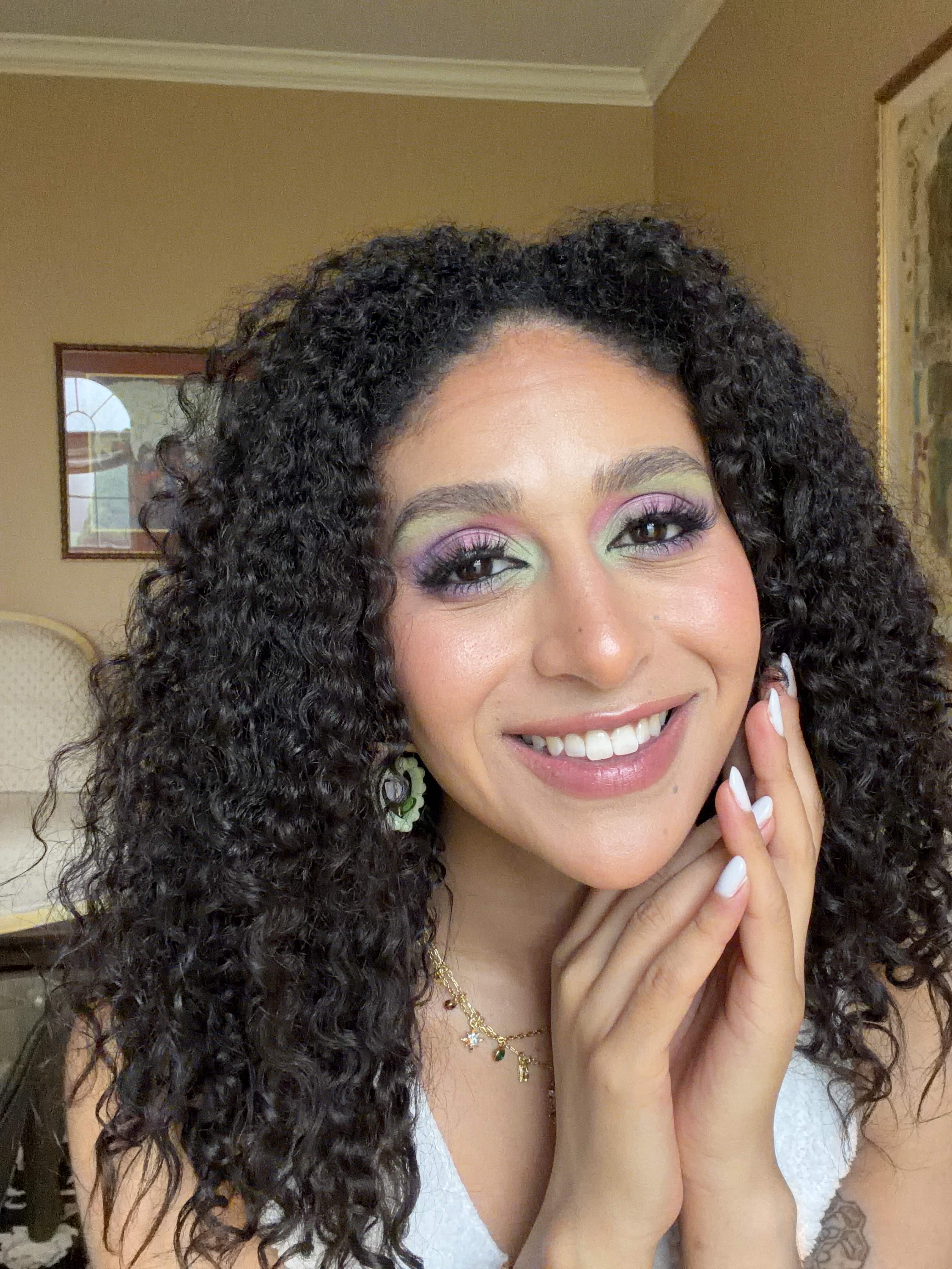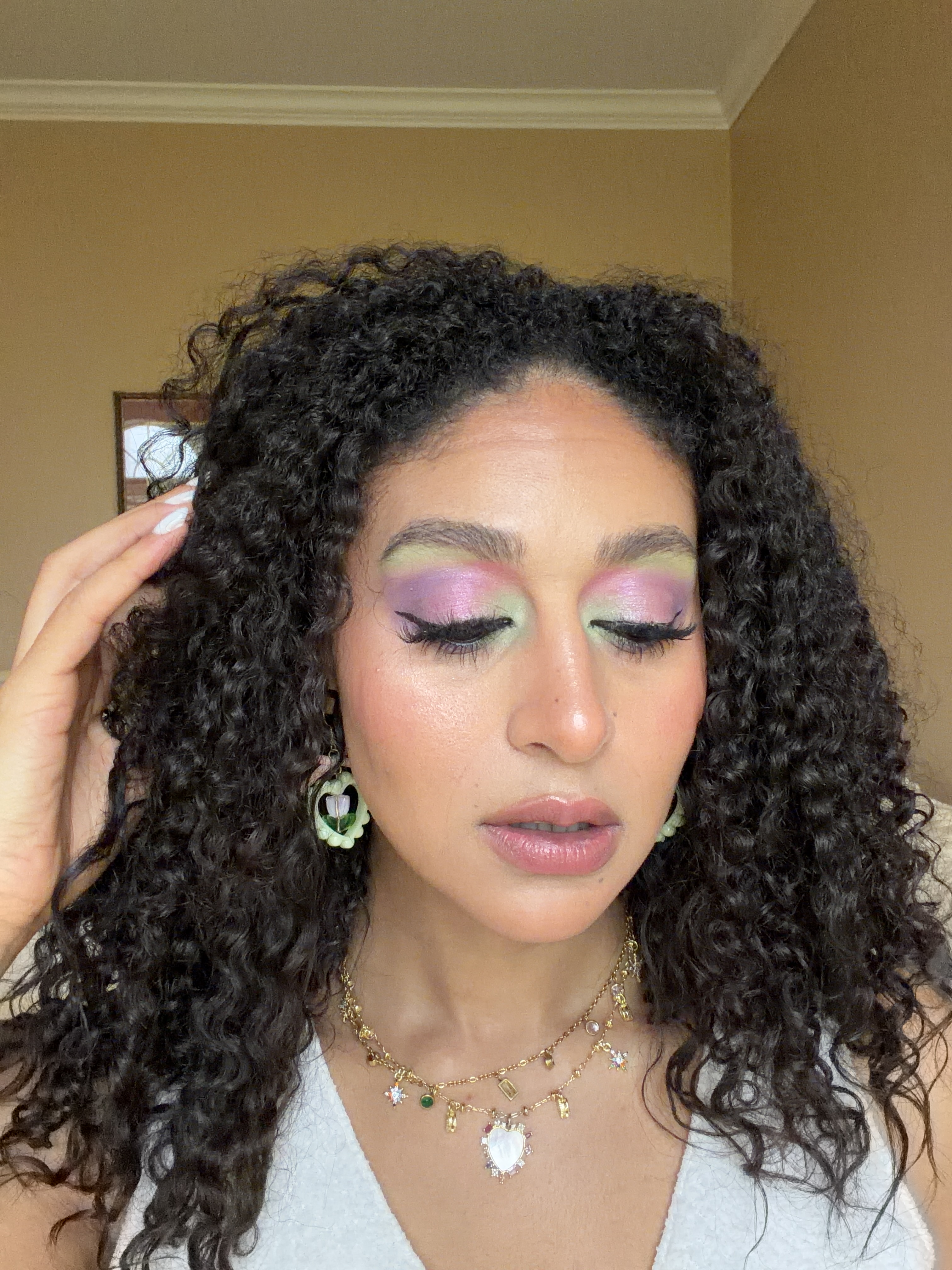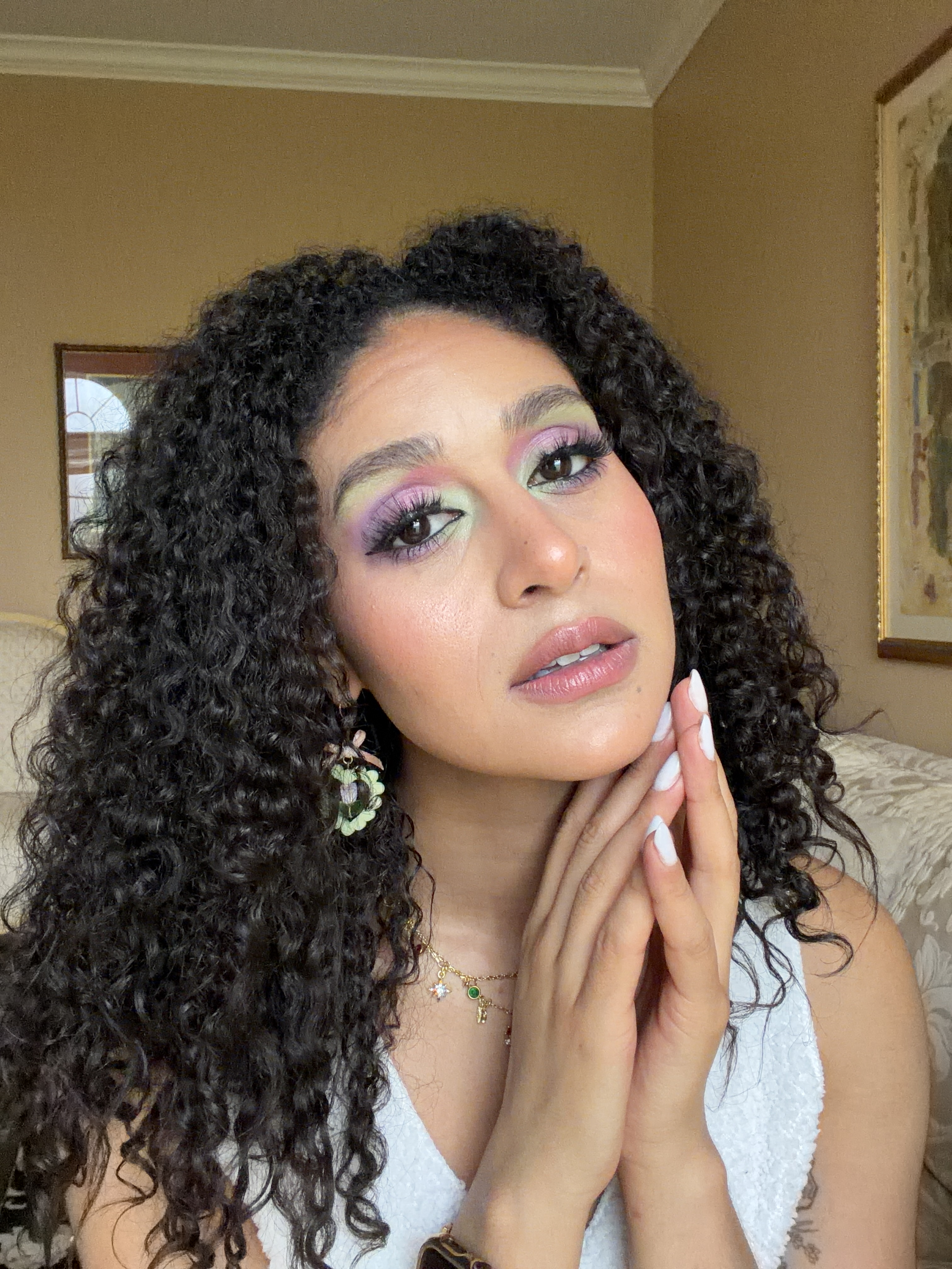We started off strong with a holiday makeup look! This year for Easter I embraced the spirit of a dyed egg, creating this purple-pink-and-green tie dye effect!