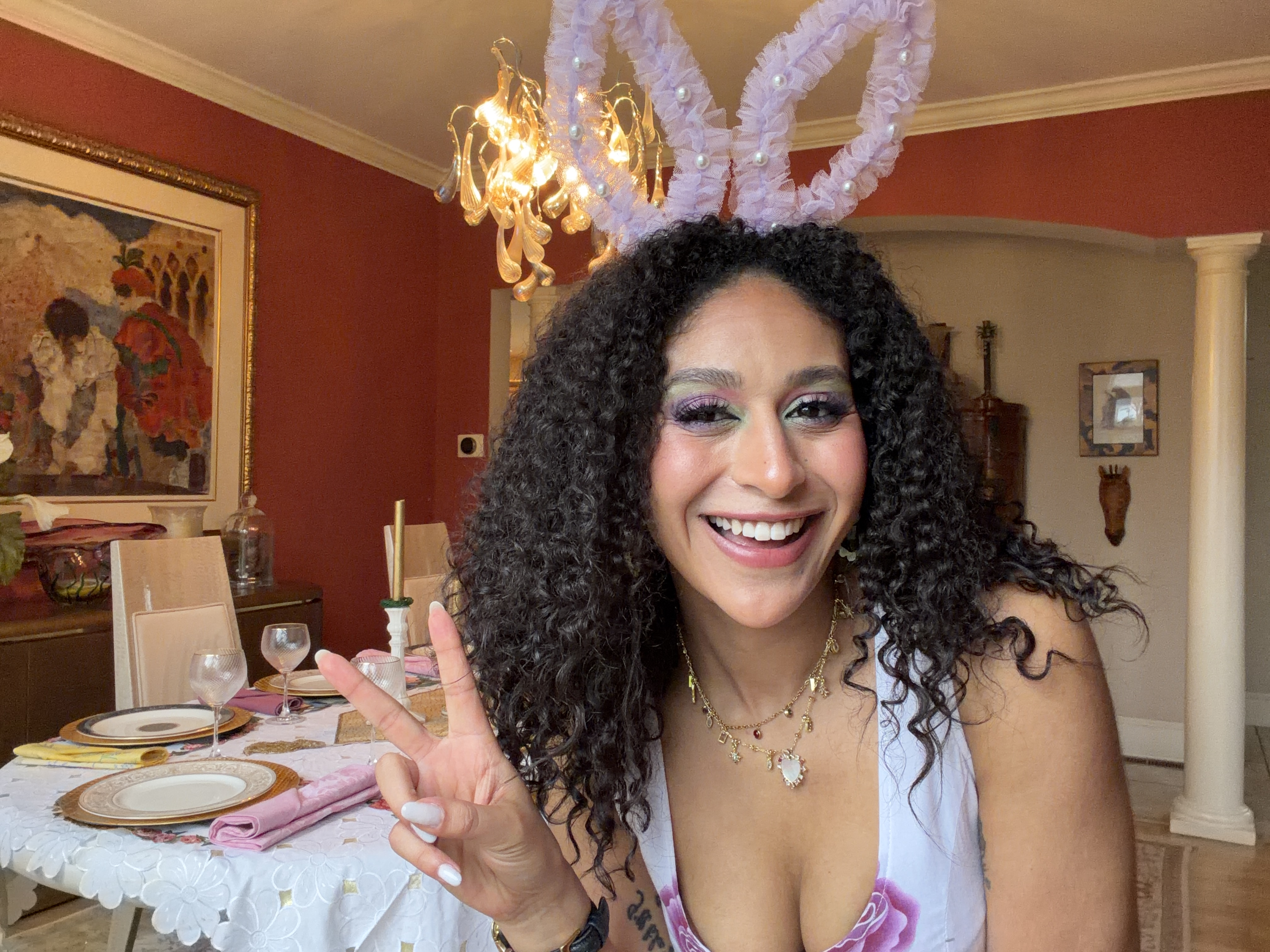 I’m obsessed with how this look came out – and can we talk about the ears?! I’m so glad I bought those for Easter last year, because they totally brought this year’s glam together! And, you can watch the tutorial below!