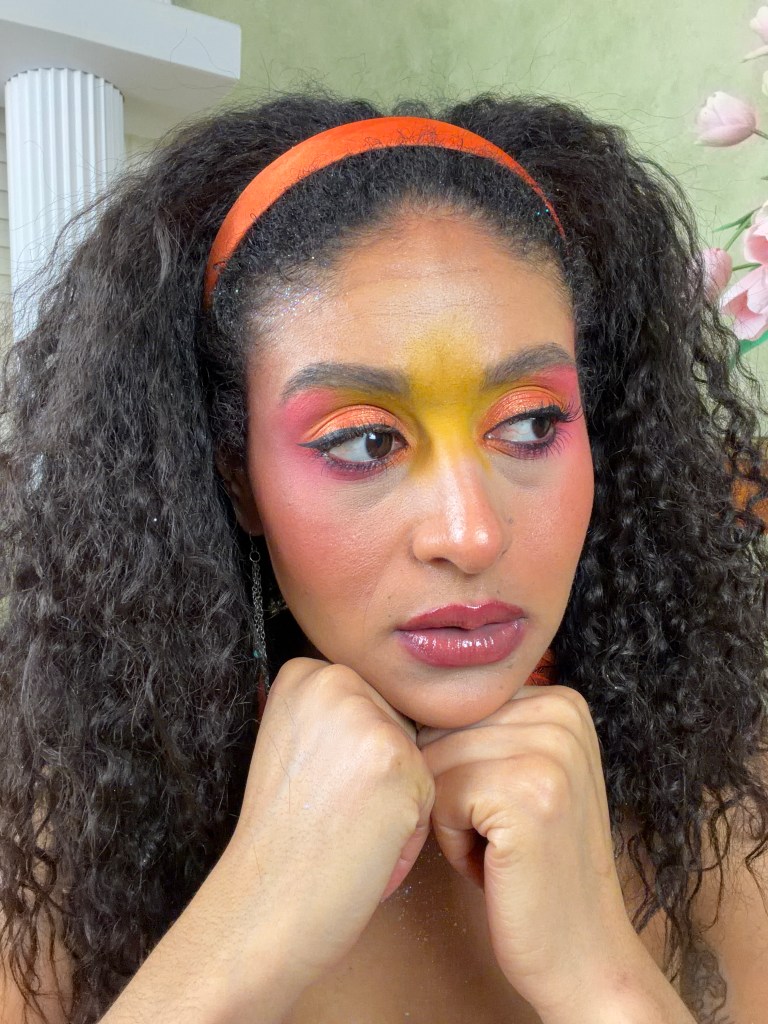 The eyeliner, by Secrets of Pharaoh, is standard felt tip liquid eyeliner in black: functional, effective, nothing to write home about. The Morphe eyeshadow palette – 9B Matte Essentials – is unassuming, but created the most beautiful mango-inspired eye look!