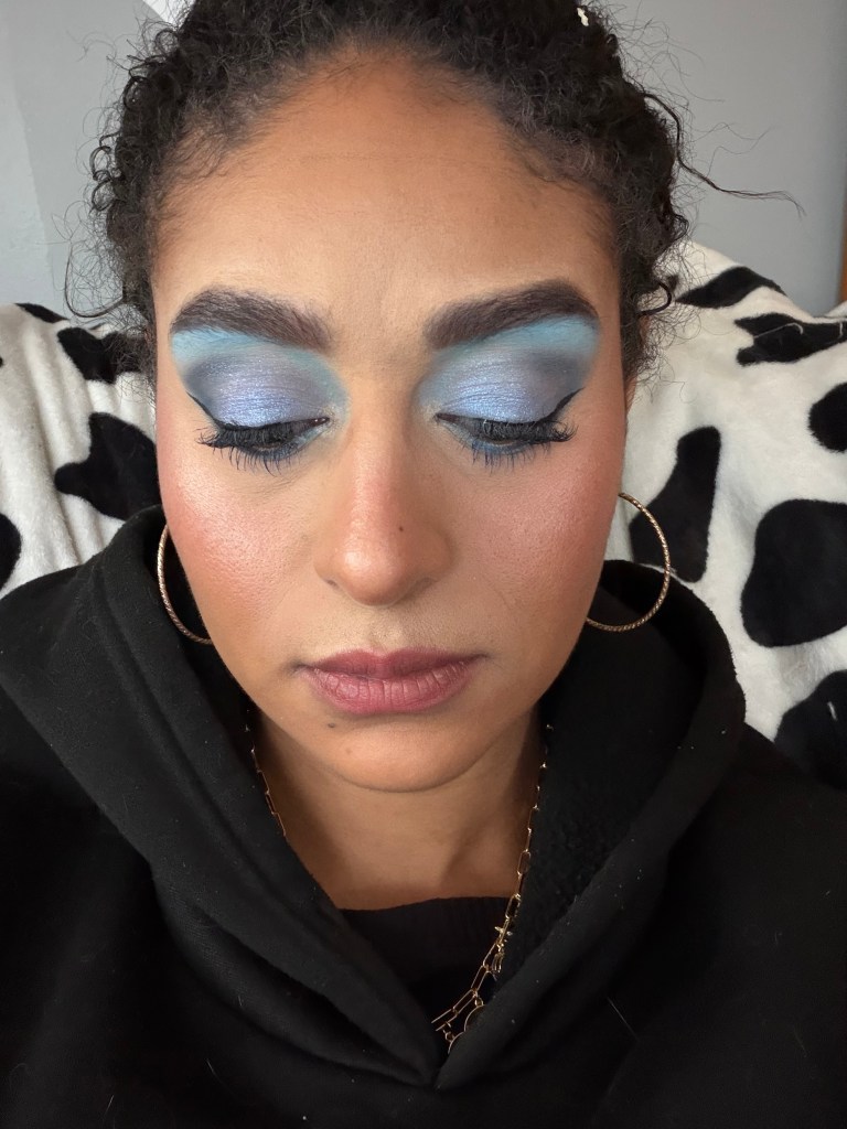 As if the gods themselves were watching out for me, I was blessed with an entirely blue eyeshadow palette in my ColourPop mystery box! The first look with the palette was a bit excessive, but I wanted to try as many of the shades as possible.